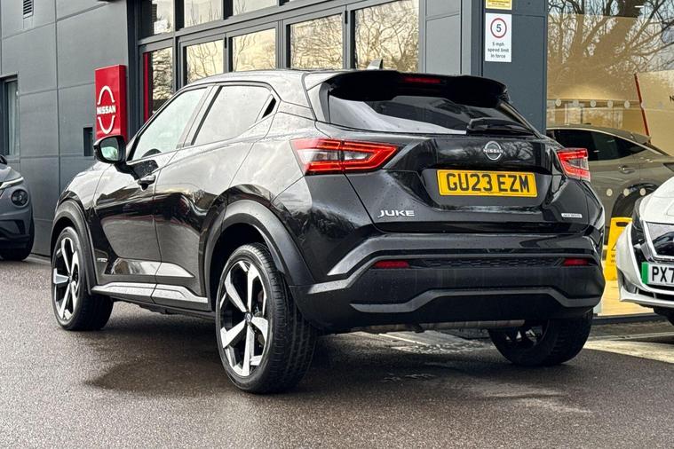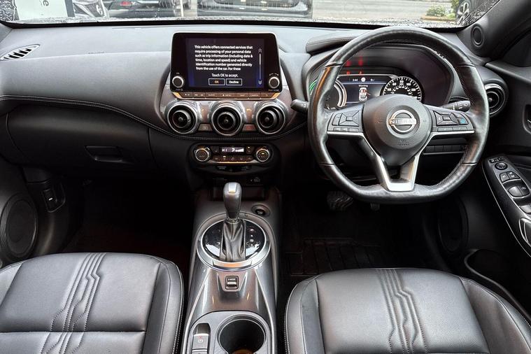 This 2023 Nissan Juke Tekna is a superb example, having had only one owner from new and carrying Nissan manufacturer approval. This stylish compact SUV is powered by an efficient 1.6L Petrol Hybrid engine, meeting Euro 6 emission standards. Inside, you'll find a wealth of technology and comfort, including a Bose Personal Plus Audio System for an immersive sound experience, and convenient USB and AUX socket inputs alongside Bluetooth connectivity. The Tekna trim also boasts LED headlights for enhanced visibility and a Comfort Pack featuring climate control to ensure a pleasant journey. Parking is made easier with front parking sensors, part of its advanced parking assistance system.The Nissan Juke Tekna offers significant advantages, highlighted by its impressive fuel economy of 55 mpg, demonstrating its efficiency on the road. Furthermore, its low CO2 emissions and low insurance group rating make it a cost effective choice for many drivers. These factors collectively indicate that this Juke is a more economical and potentially more affordable vehicle to own and run compared to similar models..