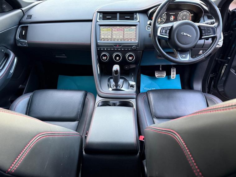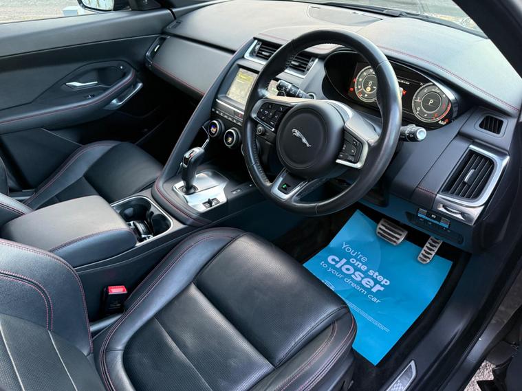 This 2020 Jaguar E-PACE D180 Chequered Flag boasts a full dealership service history, with its last service completed at 56, 446 miles, offering excellent provenance. This stylish SUV features a powerful 2.0 litre diesel engine paired with a four wheel drive system, ensuring confident handling in all conditions. As a Euro 6 compliant vehicle, it meets modern emissions standards. The Chequered Flag trim level enhances the already premium feel, and you'll appreciate the convenience of keyless entry and a rear view camera for easier parking.Inside, the E-PACE D180 Chequered Flag is designed for modern connectivity and comfort. Enjoy seamless integration with your smartphone thanks to Apple CarPlay and Android Auto, all displayed on the intuitive infotainment system. The expansive fixed panoramic roof floods the cabin with light, creating an airy and pleasant atmosphere. Practicality is also a strong point, with generous boot space making it ideal for families and everyday life. The impressive acceleration of 0-60mph in just 8.6 seconds demonstrates that this Jaguar offers a dynamic driving experience, setting it apart from many other vehicles in its class..