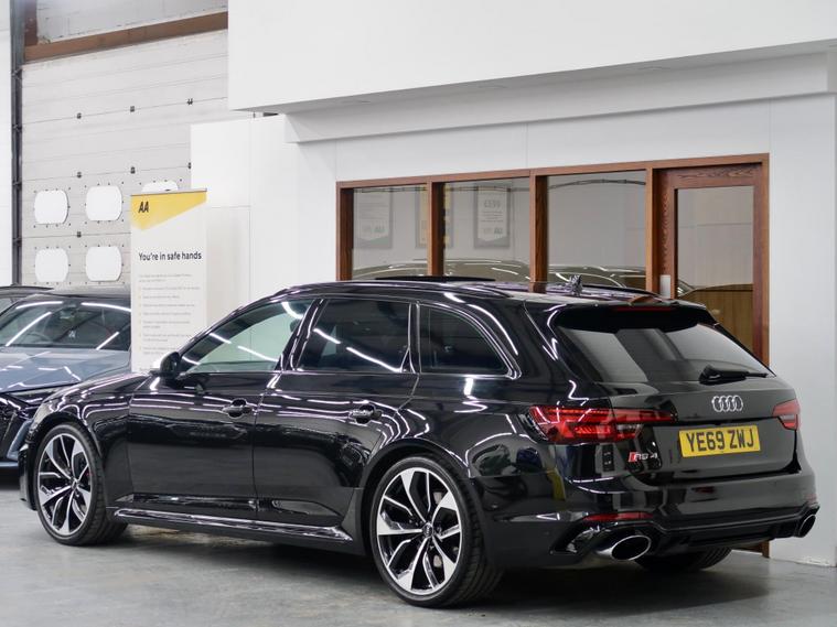 Here We have a 2019 / 69 Reg Audi RS4 Avant 2.9 TFSI V6 Avant Tiptronic QUATTRO 5dr Presented In One Of The Most Desirable Colours ' MYTHOS BLACK ' With Contrasting Full LUNAR silver Super Sports Leather Interior, Fresh Import from JAPAN, With Full Audi Main Dealership Service History And 2 Keys. MEGA SPEC INCLUDED: VIRTUAL COCKPIT + SUPER SPORT SEATS + DRIVING ASSISTANCE TOUR PACK + COMFORT & SOUND PACK + 360 SURROUND CAMERAS + ADAPTIVE CRUISE CONTROL ( ACC ) + UPGRADED RS MATRIX LED HEADLIGHTS WITH LED REAR LIGHTS AND DYNAMIC FRONT AND REAR INDICATORS + BANG & OLUFSEN + KEYLESS ENTRY / START + RS SPORT SUSPENSION + DYNAMIC RIDE CONTROL ( DRC ) + LANE / BLIND SPOT ASSIST + PARK ASSIST + FULL LUNAR SILVER QUILTED LEATHER INTERIOR + MASSAGE /HEATED / ELECTRIC WITH DRIVERS MEMORY SEATS + EXTENDED AMBIENT LIGHTING + AUDI DRIVE SELECT + SPORTS PADDLE SHIFT GEARBOX + BLUETOOTH / SMARTPHONE CONNECTIVITY + APPLE CAR PLAY + REAR CLIMATE CONTROL + FRONT / REAR PARKING SENSORS + ELECTRIC TAILGATE OPEN /CLOSE + PRIVACY GLASS + UPGRADED 20'' 5 TWIN-SPOKE DESIGN ALLOY WHEELS + MUCH MORE !About Us We are a family-run business established since 2000, Our reputation is built on trust, quality, and customer satisfaction. We are proud to be recognised as an AutoTrader Highly Rated Dealer for both 2024 and 2025, and finalists in the AutoTrader Retailer Awards 2025, reflecting our continued commitment to exceptional service and customer care. Buy with complete confidence and peace of mind please read our verified customer reviews..
