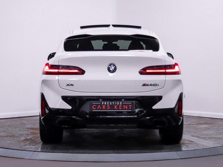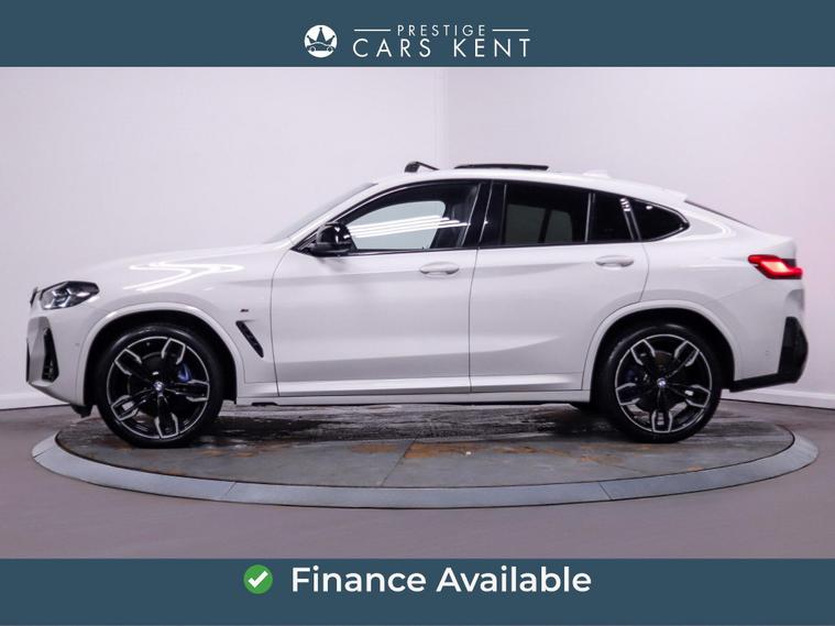 ⭐ BMW X4 M40i ⭐The BMW X4 M40i perfectly combines coupe-inspired style with thrilling M Performance power. Bold, athletic, and unmistakably sporty, it delivers razor-sharp handling alongside everyday comfort and practicality. Inside, premium materials meet advanced technology, creating a driver-focused cabin that feels as exciting as the drive itself. If you want performance, presence, and luxury in one dynamic SUV, the X4 M40i delivers on every level.Some features we love:? Panoramic Glass Sunroof – Floods the cabin with natural light, enhancing space and comfort.? Technology Package – Advanced driver tech and infotainment upgrades for a smarter driving experience.? Additional Storage Compartment – Extra practical space to keep essentials neatly tucked away.? Harman Kardon Surround Sound System – Crystal-clear, immersive audio for every journey.? 21in Alloy Wheels – 718 M Double-Spoke Bi-Colour – Bold styling with performance run-flat tyres.? Ambient Lighting – Customisable interior lighting to match your mood and driving atmosphere.? Cruise Control – Effortless motorway driving with steady speed management.?️ Driving Assistant – Intelligent safety systems supporting awareness and driver confidence on the road.? Front and Rear Parking Sensors – Audible alerts to make parking easier and stress-free.? M Aerodynamic Bodystyling – Aggressive M styling for enhanced presence and sporty character.?️ Parking Assistant – Helps guide the car smoothly into tight parking spaces.❄️ Front Heated Seats – Stay warm and comfortable during colder drives.☎️ 01689242905 ? Submit an enquiry to discuss over emailAt Prestige Cars Kent, every car comes with a 90-day guarantee, nationwide delivery, and a 175-point quality check.⭐ Admin fee applies. Please confirm all specifications, as they are autogenerated ⭐.