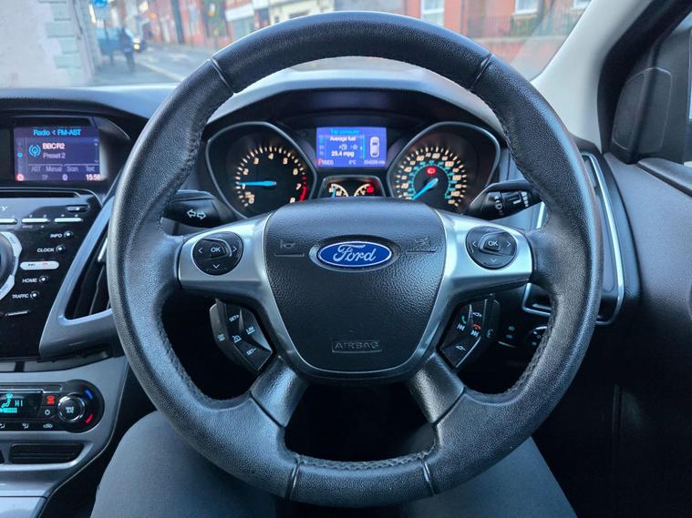 Discover this 2012 Ford Focus Titanium with exceptionally low mileage for its age, having covered just 54, 163 miles. This well appointed model features a 1.6 litre petrol engine and comes with a 3 month warranty for your peace of mind. Its partial service history provides a record of its upkeep. Inside, you'll find a premium Sony DAB audio system complete with a branded sound system, and Bluetooth handsfree with voice control for seamless connectivity. Comfort is assured with dual zone electronic automatic climate control, and the convenience of automatic headlights means you're always prepared for changing light conditions.This Ford Focus Titanium stands out with its very low mileage, indicating less wear and tear compared to many other vehicles of its kind. Its large boot space offers practical versatility for shopping trips or luggage. Furthermore, its low insurance group rating suggests that running costs could be more economical. These factors combine to make this Focus a compelling choice for those seeking a reliable and well equipped vehicle..