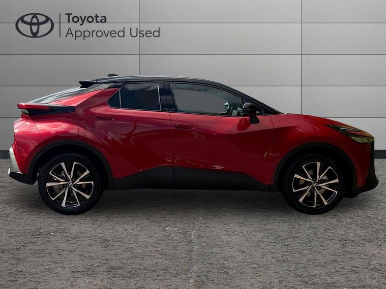This 2025 Toyota C-HR VVT-h Design is a Toyota manufacturer approved vehicle with an exceptional service history, having had its last service on 2025-09-05 at just 10 miles, and boasts a remarkably low mileage of only 1755 miles. This Euro 6 compliant 1.8L petrol hybrid is presented in Design trim and comes with the remainder of its 33 month warranty, while its MOT is valid until September 2028. It has had only one owner from new and features Smart Entry and Push-Button Start, a Wireless Mobile Phone Charger, Intelligent Front Parking Sensors with Clearance Sonar and Automatic Braking, and Intelligent Adaptive Cruise Control. The vehicle is also equipped with LED Reflector Headlights.The Toyota C-HR VVT-h Design offers several advantages over similar vehicles, including its low CO2 emissions and its placement in a low insurance group, making it an economical choice. Its low mileage for its age and comprehensive full service history, coupled with the manufacturer approval and remaining warranty, provide excellent peace of mind for its next owner..