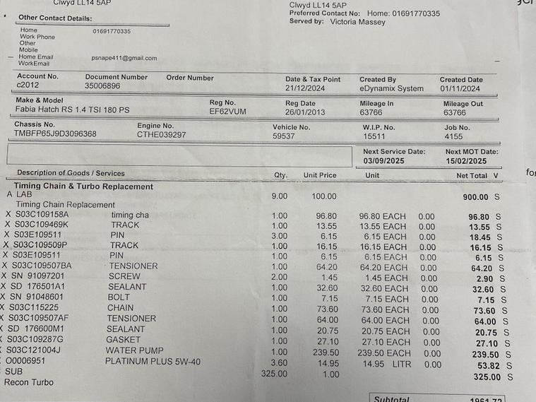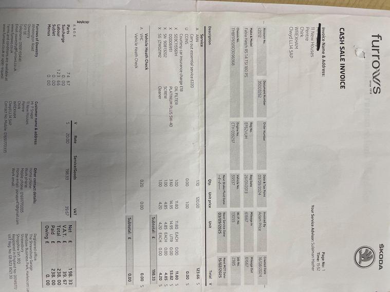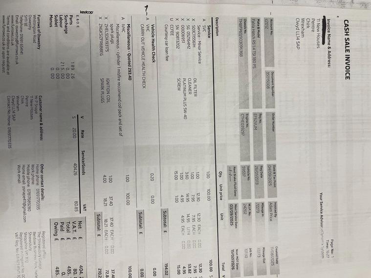 SERVICE HISTORY 12 MONTHS MOT.