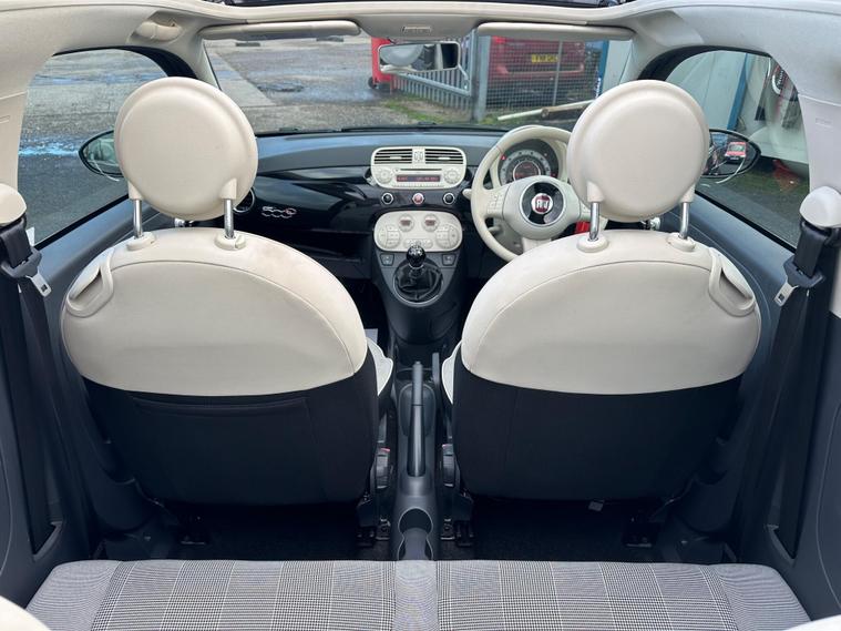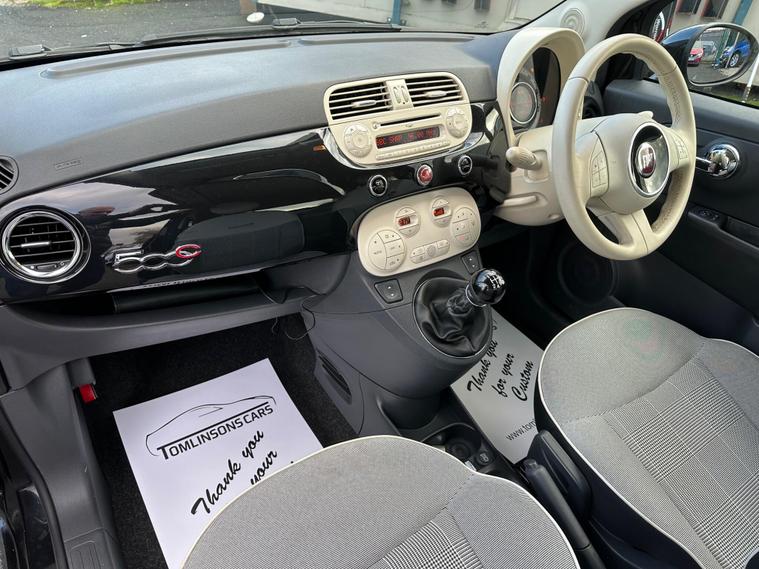 HERE WE HAVE A STUNNING EXAMPLE OF THE POPULAR 500C LOUNGE. FINISHED IN METALLIC BLACK WITH RED POER HOOD+UPGRADED FACTORY ALLOY WHEELS+FULL SERVICE HISTORY AND CAMBELT WAS REPLACED AT 40K.HPI CLEAR+FINANCE ARRANGED+2 FORMER KEEPERS+CHEAP TAX AND INSURANCE GROUP.