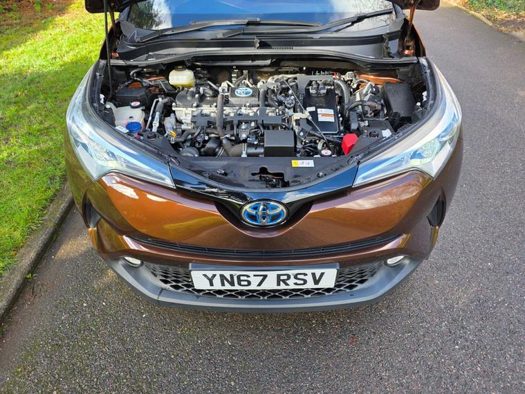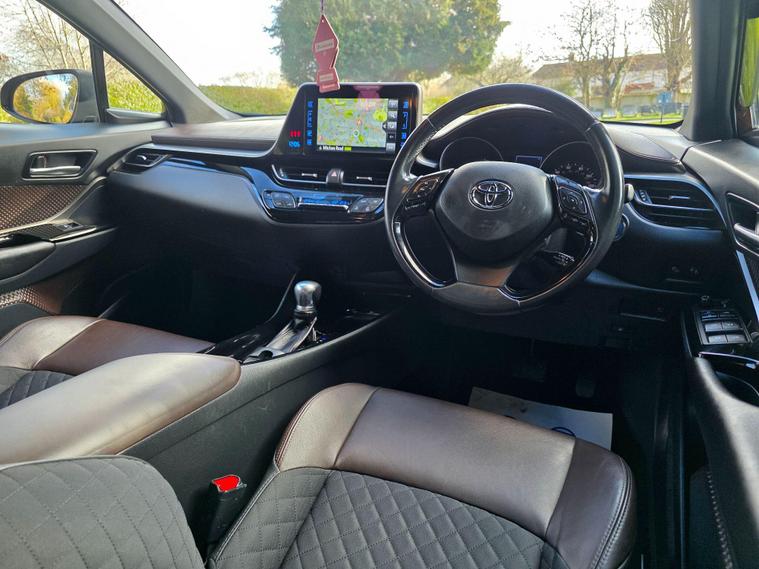 This 2017 Toyota C-HR VVT-h Excel boasts exceptionally low mileage for its age, having covered just 29, 700 miles, and comes with a clear vehicle history check. This stylish SUV features the desirable Accent Pack in Havanna Brown, complemented by an SUV Pack and Sport Pack, all riding on striking 18 inch Glossy Silver 10 double spoke alloy wheels. Inside, the Leather Pack ensures a premium feel, making this Euro 6 compliant hybrid a truly well appointed example.The C-HR Excel stands out with its impressive fuel economy, achieving a remarkable 72 miles per gallon, which is significantly better than many other vehicles in its class. Furthermore, its low CO2 emissions and low insurance group highlight its cost effectiveness and efficiency, making it an attractive choice for those seeking a blend of style, economy, and practicality..