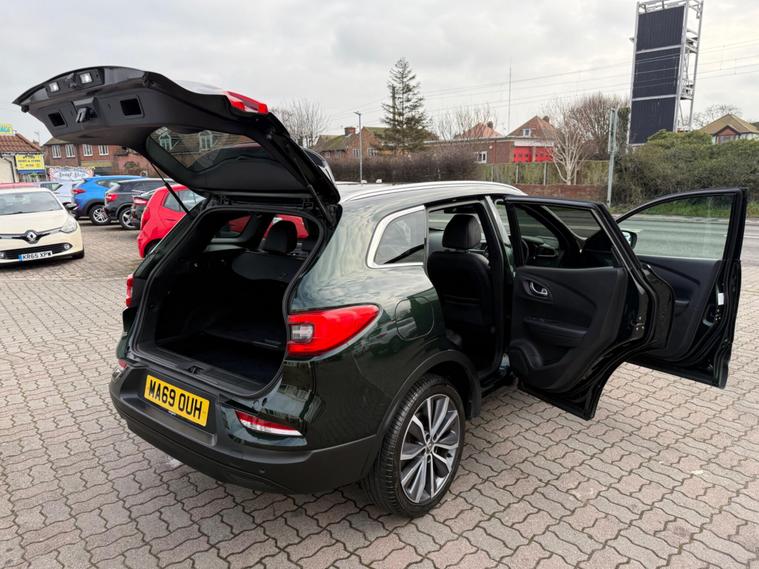 ONE FORMER KEEPER, 6 MONTHS WARRANTY, MOT TILL 15/12/2026, Experian clear, just serviced, all prev MOT’s avail, we are located at 1-9 WALTON ROAD FRINTON ON SEA ESSEX CO13 0AA, PART EXCHANGE WELCOME, FINANCE AVAILABLE, Enjoy peace of mind with this Renault Kadjar TCe Iconic, boasting a Experian clear vehicle history check and an MOT valid until December 2026. This 2019 model, with its 1.3L Euro 6 petrol engine, offers a compelling blend of style and practicality. Inside, you'll find the R-Link 2 Multimedia System featuring a 7in touchscreen with Bluetooth, Apple CarPlay and Android Auto for seamless connectivity. Parking is made effortless with front and rear parking sensors and assistance, while the hands free keycard with walk away lock function adds a touch of modern convenience. Automatic dual zone climate control ensures a comfortable cabin environment for all occupants.This Kadjar is designed for everyday life, offering a large boot space perfect for luggage or shopping. Its low CO2 emissions are a testament to its efficient Euro 6 engine, making it a more environmentally conscious choice. Experience responsive performance with an acceleration of 0-62mph in just 9.6 seconds, demonstrating its capability compared to other vehicles in its class. With a recent service in January 2026 and a 6 month warranty included, this Kadjar is ready for its next adventure..