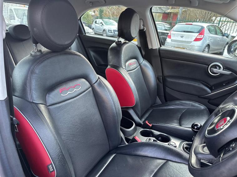 This 2016 Fiat 500X E-Torq Pop Star is a great find, having had only two owners from new. This Euro 6 compliant 1.6 litre petrol model offers a stylish and practical driving experience. Inside, you'll appreciate the comfortable Black Leather upholstery with striking Red Cloth detailing and White Piping, along with the convenience of a 3rd Rear Head Restraint. For your entertainment and connectivity, it features Bluetooth Audio Streaming, and for your comfort, Automatic Dual Zone Climate Control. Parking is made easier with the inclusion of Rear Parking Sensors. ULEZ and CAZ compliant. Low insurance group of 8E.The Fiat 500X Pop Star stands out with its desirable features, indicating a higher specification compared to many other vehicles in its class. Its low insurance group rating is a significant advantage, potentially saving you money on running costs. This combination of thoughtful features and economical ownership makes this 500X a compelling choice for anyone seeking a well equipped and well maintained compact SUV..