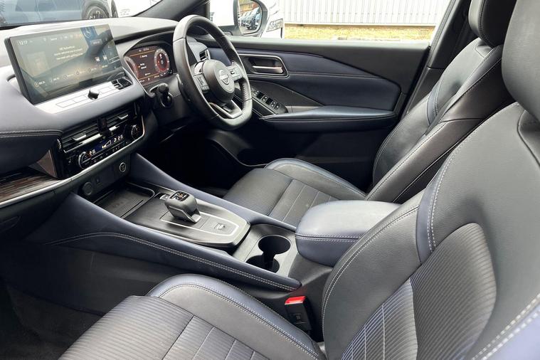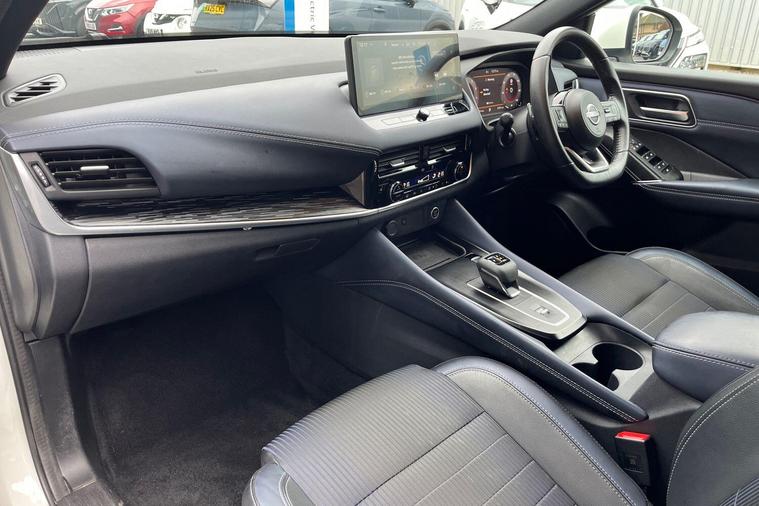 This 2022 Nissan Qashqai DIG-T Tekna is a Nissan manufacturer approved vehicle, offering peace of mind. It features a 1.3 litre petrol hybrid engine, meeting Euro 6 emission standards. This Tekna trim model comes equipped with a rear view camera, LED headlights with adaptive driving beam, and front and rear parking sensors, all designed to assist with parking. For a comprehensive view, it also includes an intelligent around view monitor providing a 360 degree camera perspective. Connectivity is enhanced with wireless Apple CarPlay.The Qashqai DIG-T Tekna stands out with its generous boot space, offering ample room for your luggage or shopping. Furthermore, its placement in a low insurance group indicates that running costs are kept to a minimum, making it a more economical choice compared to similar vehicles. These combined benefits of practicality and affordability make this Nissan Qashqai a compelling option..