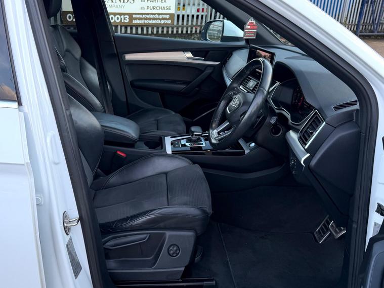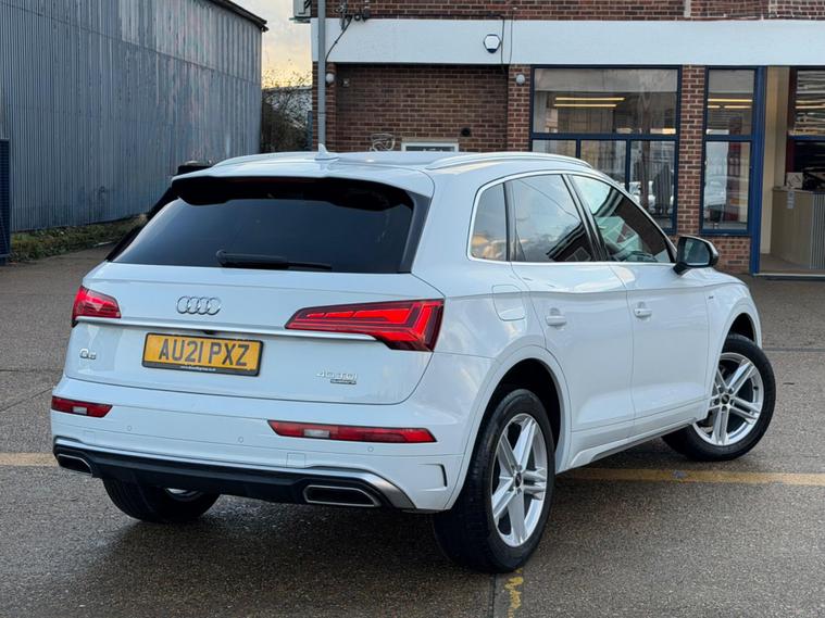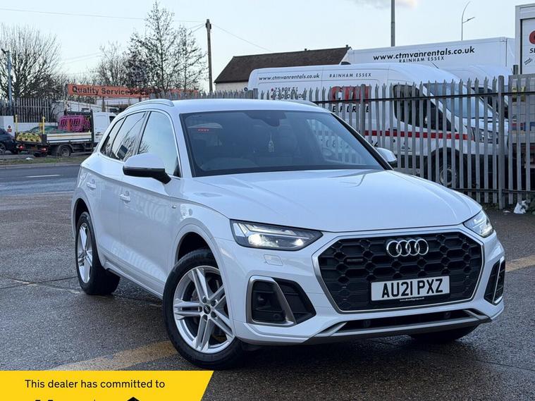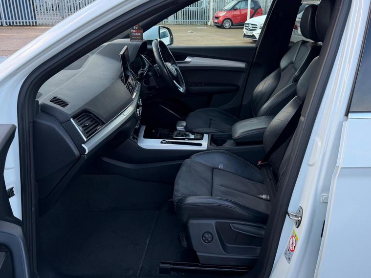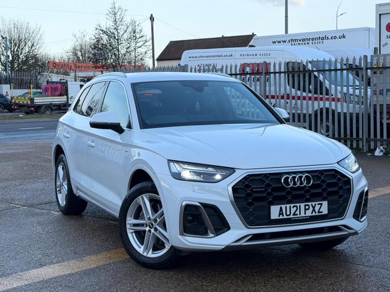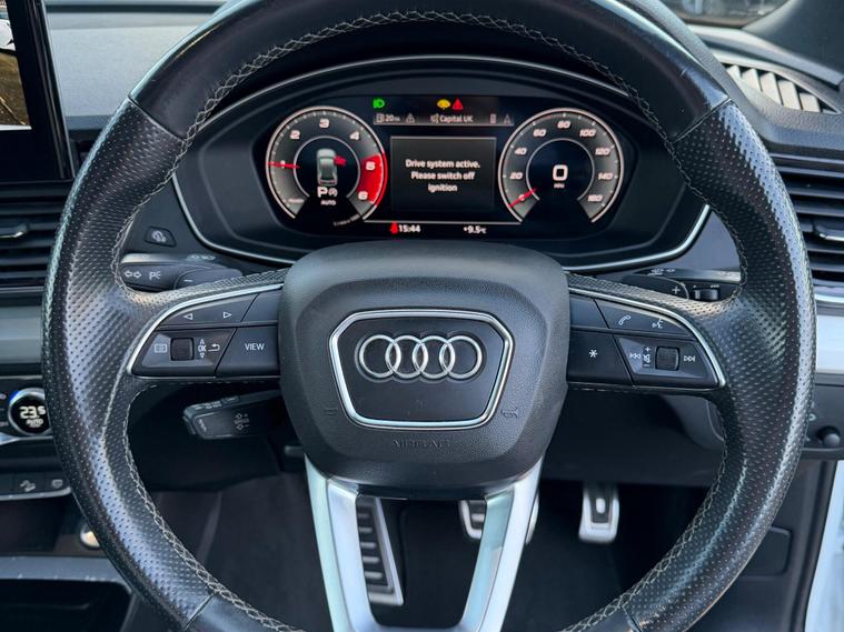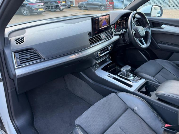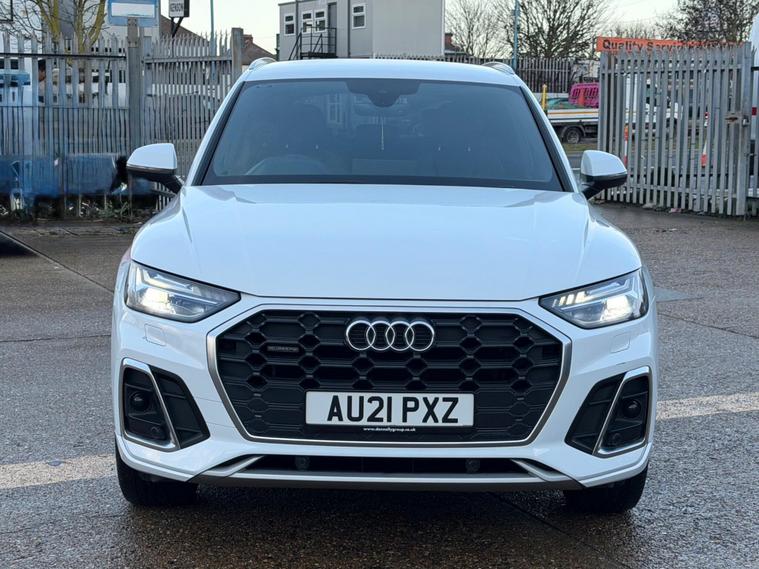 This 2021 Audi Q5 TDI S line boasts a clear vehicle history, offering you peace of mind. This four wheel drive model is powered by an efficient 2.0 litre diesel engine, meeting Euro 6 emissions standards. Inside, you'll find the comfort of heated front seats and a Deluxe 3-Zone Electronic Climate Control system. Connectivity is seamless with the Bluetooth Interface and Audi Wireless Smartphone Interface, supporting both Android Auto and Apple CarPlay. The striking Matrix LED headlights with dynamic front and rear indicators ensure excellent visibility.Experience impressive performance with acceleration from 0 to 62mph in just 7.6 seconds, a figure that demonstrates its capability compared to other vehicles in its class. This Q5 also offers a substantial towing weight of 2400 kg, making it a versatile choice. With a fuel economy of 44 mpg, it balances power with efficiency, and the generous boot space provides ample room for all your luggage and shopping needs..