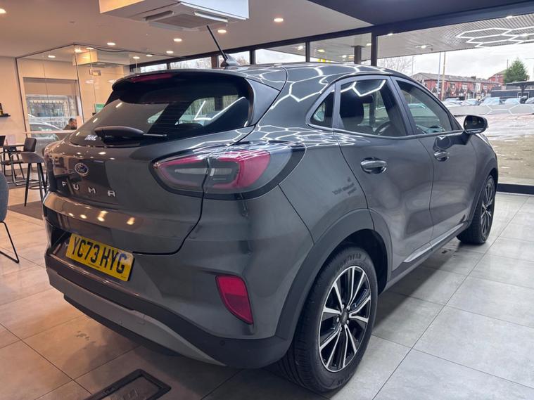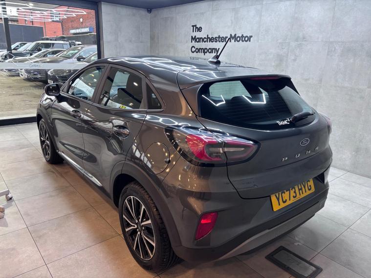 This 2023 Ford Puma T Titanium is a superb example, having had only one owner since new. Powered by an efficient 1.0L Petrol Hybrid engine and meeting Euro 6 emissions standards, this vehicle offers a blend of modern technology and responsible driving. Inside, you'll find a stylish Aluminium Gear Knob and Electronic Air Temperature Control for a comfortable cabin environment. The Ford SYNC 3 Navigation system, complete with Android Auto and Apple CarPlay, ensures seamless connectivity, while Rear Parking Sensors with Parking Assistance make manoeuvring simple.The Titanium trim level on this Ford Puma provides a well appointed driving experience. The inclusion of features like the advanced SYNC 3 system and climate control demonstrates a higher level of specification compared to many other vehicles in its class. This particular Puma is designed to offer convenience and enjoyment for every journey..