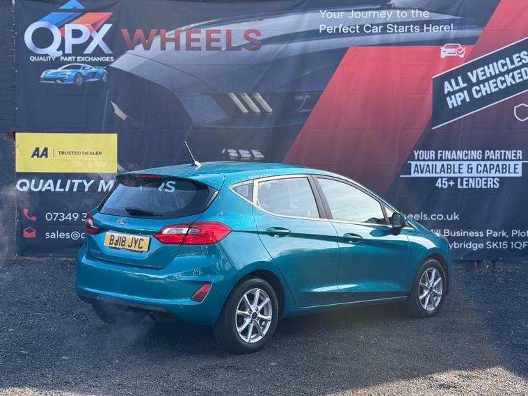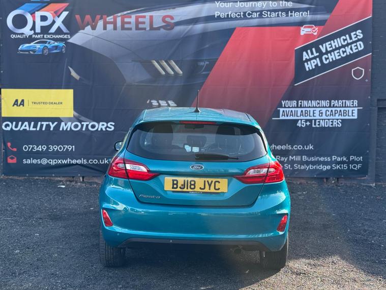 QPX Wheels pleased to offer this 2018 Ford Fiesta 1.0T EcoBoost Zetec, finished in blue with 72, 754 miles and 1 owner. A reliable and economical Euro 6 petrol with smooth manual gearbox and low running costs. ULEZ, practical, and ideal for daily driving. Well maintained and ready to drive away.1 PREVIOUS KEEPER- FULL SERVICE HISTORY-HPI CLEAR-ULEZ COMPLIANT - 2 KEYS- AQUA BLUE -EYE CATCHING BLUECruise control with speed limiterLane Keeping AidSpeed sign recognitionPre-Collision Assist with Autonomous Emergency BrakingHill Start Assist(TPMS)Electronic Stability Control (ESC)Traction controlABS braking systemMultiple airbagsFord SYNC infotainment systemBluetooth hands-free & audio streamingDAB/USBTouchscreen displayAir conditioningMulti-function steering wheelElectric front windowsHeight-adjustable driver’s seatSplit-folding rear seatsCloth upholsteryDue to high demand, early booking of viewings is recommended. Arrange yours via our website https:/ dealer's website or by calling +44 (0)7349390791Our friendly team will look after you before, during and after the sales. We will help you with taxing the vehicle, completing official forms, and we will make sure that you, your family and loved ones are safe on the road. We also offer a wide range of warranties and finance to meet your needs. WHO WE AREWe are a car dealership with 16 years of experience, based in Clarence Street, Stalybridge, SK15 1QF. We are 100% sure that we can find you the right vehicle as we offer over 150 cars for sale at any time. OUR QUALITY PROMISE- Every car comes with our FREE 3 Months warranty- We offer a fresh MOT for all vehicles due for one within the next 3 months. - All our vehicles are HPI Clear and undergo a 39-Point check, conducted by professional inspectors. - Every vehicle is valeted and sanitised to a high standard. - We are able to offer delivery nationwide at competitive prices, don't hesitate to contact us for a quote.FINANCE, PART EXCHANGE OR A STRAIGHT PURCHASE IS AVAILABLE. QPX Wheels Team.https:/ dealer's website