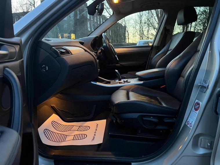 QPX Wheels is pleased to offer this 2013 BMW X3 2.0 20d SE xDrive Automatic, finished in silver with 100, 000 miles and 2 owners. A premium SUV with smooth automatic transmission, all-wheel drive, and strong diesel performance. Spacious, reliable, and ready to drive away.Part leather / cloth interiorDual-zone climate controlElectric windows & mirrorsMulti-function leather steering wheelCruise control with speed limiterBluetooth hands-free & audioUSB/AUX connectivityAutomatic lights & wipersHeight-adjustable seatsSplit-folding rear seatsLarge boot spaceFront & rear parking sensors (PDC)Hill descent controlDynamic Stability Control (DSC)Traction controlTyre pressure monitoringABS & multiple airbagsISOFIX child seat pointsAuto Hold & electronic parking brakeDue to high demand, early booking of viewings is recommended. Arrange yours via our website https:/ dealer's website or by calling +44 (0)7349390791Our friendly team will look after you before, during and after the sales. We will help you with taxing the vehicle, completing official forms, and we will make sure that you, your family and loved ones are safe on the road. We also offer a wide range of warranties and finance to meet your needs. WHO WE AREWe are a car dealership with 16 years of experience, based in Clarence Street, Stalybridge, SK15 1QF. We are 100% sure that we can find you the right vehicle as we offer over 150 cars for sale at any time. OUR QUALITY PROMISE- Every car comes with our FREE 3 Months warranty- We offer a fresh MOT for all vehicles due for one within the next 3 months. - All our vehicles are HPI Clear and undergo a 39-Point check, conducted by professional inspectors. - Every vehicle is valeted and sanitised to a high standard. - We are able to offer delivery nationwide at competitive prices, don't hesitate to contact us for a quote.FINANCE, PART EXCHANGE OR A STRAIGHT PURCHASE IS AVAILABLE. QPX Wheels Team.https:/ dealer's website