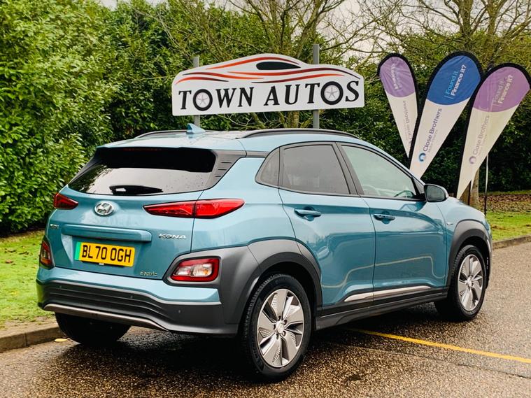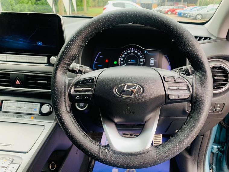 BATTERY HEALT REPORT ABOVE 95% , FULL SERVICE HISTORY, 02 FORMER KEEPERS, 04 SERVICES IN BOOK, This 2020 Hyundai KONA Premium Electric boasts exceptionally low mileage for its age, having covered just 28, 805 miles, and comes with a clear vehicle history check. As an electric model, it features a substantial 68 kWh battery, offering a maximum range of 279 miles when new. This KONA is equipped with automatic headlights that activate with the dusk sensor, and for seamless connectivity, it includes Apple CarPlay. Parking is made easier with front and rear parking sensors, while the climate control system ensures a comfortable cabin temperature with an automatic de fogging function for the front windscreen. The impressive 279 mile range from new highlights how this Hyundai KONA stands out from many other electric vehicles, providing ample capability for daily commutes and longer journeys. Charging is convenient, with a full charge at home using a 7kW charger taking approximately 9 hours and 35 minutes, and a rapid charge from empty to 80% achievable in just 53 minutes at a compatible public charging station. This combination of long range, efficient charging, and desirable features makes this 2020 Hyundai KONA Premium Electric a compelling choice..