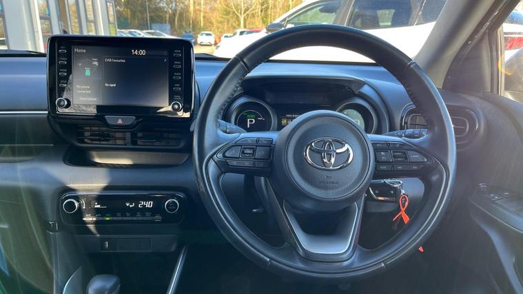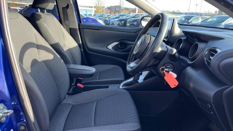 This 2021 Toyota Yaris VVT-h Design is a Toyota manufacturer approved vehicle with a full service history and only 24711 miles, making it low mileage for its age. This Euro 6 compliant model features a 1.5L Petrol Hybrid engine and comes with a 12 month warranty for your peace of mind. Notable features include automatic air conditioning with climate control, LED headlights, and a reversing camera for easier parking. It also benefits from Toyota Safety Sense 2, which includes adaptive cruise control, and automatic headlights.The Toyota Yaris VVT-h Design offers excellent fuel economy, achieving an impressive 69 mpg, and boasts low CO2 emissions. These highlights demonstrate how this Yaris is a more economical and environmentally conscious choice compared to similar vehicles..