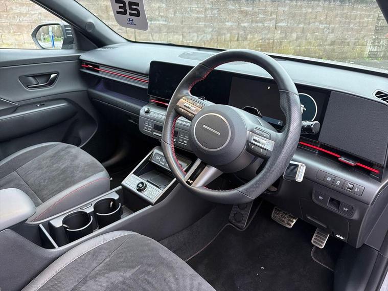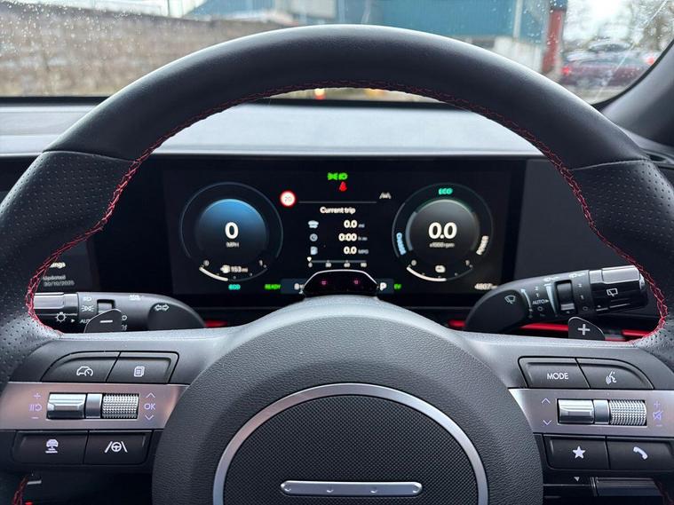 Discover the 2025 Hyundai KONA h GDi N Line S, a stylish and efficient hybrid petrol model that offers an exceptional driving experience. This Euro 6 compliant vehicle boasts an impressive fuel economy of 60 mpg, making it a cost effective choice for your daily journeys. The N Line S trim level ensures you benefit from a well equipped interior and exterior, designed for both comfort and practicality.The Hyundai KONA h GDi N Line S stands out with its low insurance group and low CO2 emissions, indicating that it is a more economical and environmentally conscious option compared to many other vehicles in its class. These highlights, combined with its advanced hybrid technology and the reputable Hyundai build quality, make this KONA a smart and appealing choice for discerning drivers..