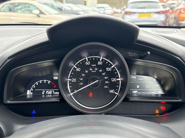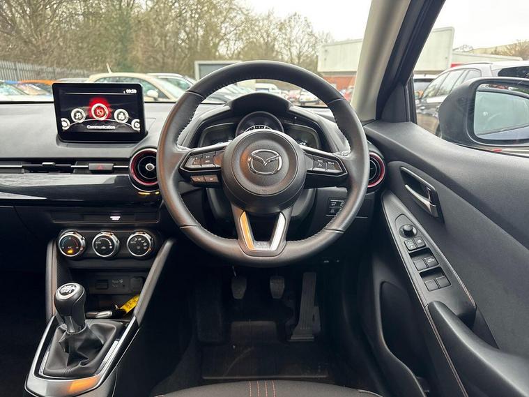 This 2023 Mazda2 e SKYACTIV G Homura is a superb example, having had only one owner since new. This stylish hatchback boasts a 1.5 litre petrol engine, meeting Euro 6 emission standards. Inside, you'll find a well equipped cabin featuring an integrated Bluetooth system for seamless phone connectivity, alongside Wireless Apple CarPlay and Wired Android Auto to keep your favourite apps accessible. Convenience is further enhanced by dusk sensing automatic headlights and climate control air conditioning, ensuring comfort in all conditions. For added peace of mind when parking, a reversing camera is also included.The Mazda2 e SKYACTIV G Homura offers an impressive fuel economy of up to 60 miles per gallon, demonstrating its efficiency compared to other vehicles in its class. It also benefits from low CO2 emissions, contributing to a more environmentally conscious drive. Performance is spirited, with acceleration from 0 to 62 miles per hour achieved in just 9.8 seconds, providing a responsive and enjoyable driving experience..