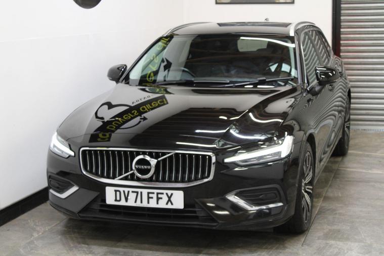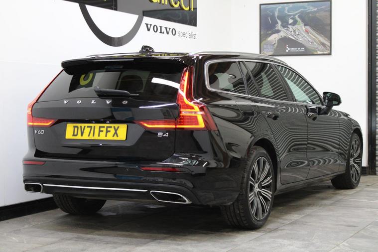 This 2021 Volvo V60 B4 Inscription is a superb example, boasting a full dealership service history and having had only one owner from new. This Euro 6 compliant 2.0L diesel hybrid offers an efficient and refined driving experience, further enhanced by the desirable Inscription trim. You can be assured of its roadworthiness with a 12 month MOT provided on purchase.The V60 Inscription comes equipped with a host of features designed for comfort and convenience. The Climate Pack includes heated front and rear seats and a heated steering wheel, perfect for colder days. Smartphone integration with Apple CarPlay and Android Auto ensures seamless connectivity, while the 19 inch diamond cut black alloy wheels add a touch of style. Front and rear park assist makes manoeuvring simple, and the generous boot space is ideal for luggage or shopping. These elements combine to make this V60 a stand out choice..