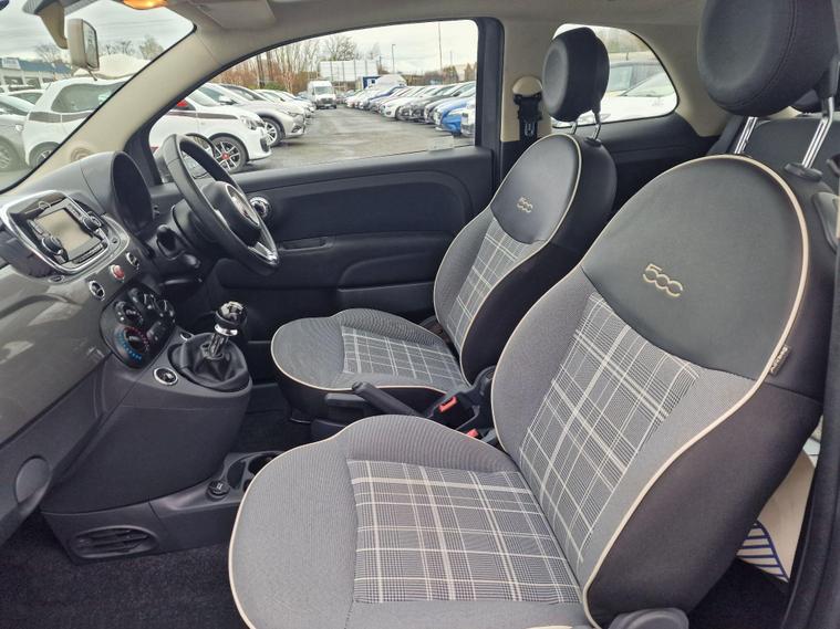 This 2017 Fiat 500 Lounge is presented with a full 12 months MOT for your peace of mind. This stylish city car boasts a 1.2 litre petrol engine and meets Euro 6 emissions standards. Inside, you'll find comfortable front seats with a memory function, perfect for quickly adjusting to your preferred driving position. The Lounge trim also includes a fixed glass roof with a sunblind, flooding the cabin with light, and air conditioning to keep you comfortable whatever the weather. For your entertainment and connectivity, there is a 5 inch touchscreen radio with AUX, USB, DAB, and Bluetooth capabilities, allowing you to stream music and take calls handsfree.Parking is made easier with the inclusion of rear parking sensors and parking assistance. This Fiat 500 is also in a low insurance group, which can help to keep your running costs down. Furthermore, its low CO2 emissions indicate that it is more environmentally friendly than many other vehicles in its class, and can also contribute to lower road tax..