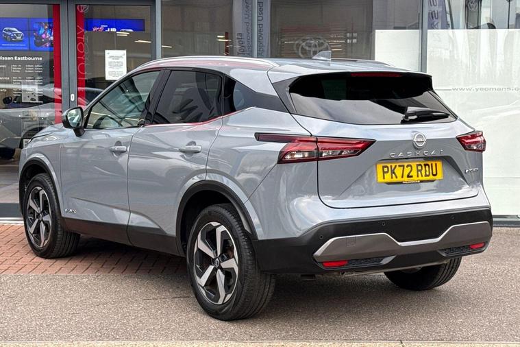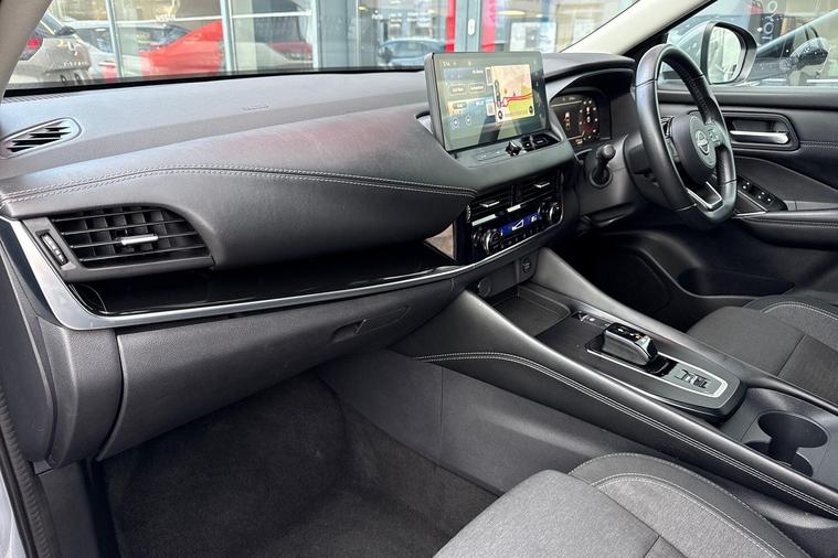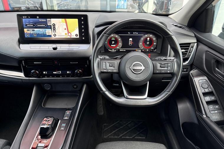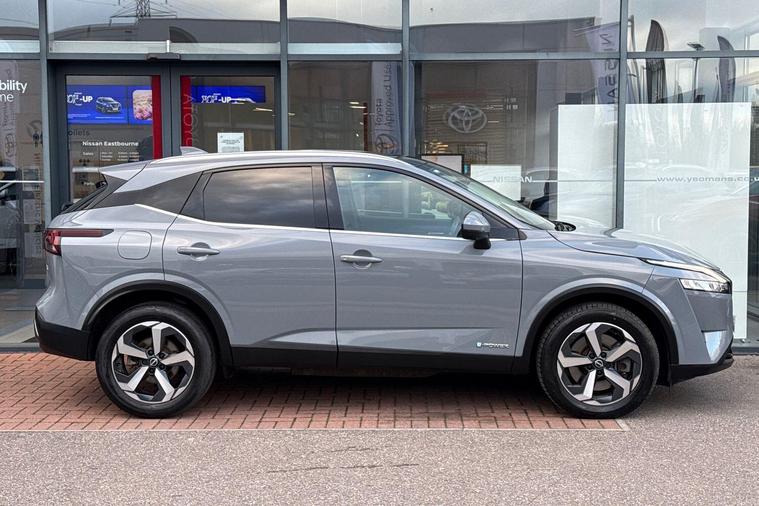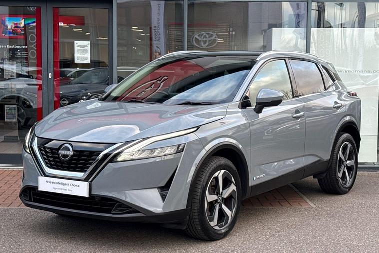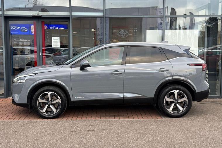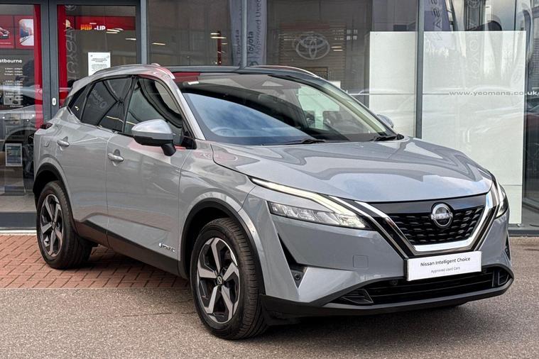 This 2022 Nissan Qashqai e-POWER N-Connecta is a Nissan manufacturer approved vehicle, offering peace of mind. This model features a 1.5 litre petrol hybrid engine and meets Euro 6 emission standards. Notable features include the Glass Roof Pack with a fixed panoramic sunroof, an Intelligent Around View Monitor with a 360 degree camera for effortless parking assistance, and wireless Apple CarPlay for seamless smartphone integration. You'll also benefit from Blind Spot Warning for enhanced safety and a rear view camera, also part of the parking assistance suite.Experience impressive efficiency with a highlight fuel economy of 54 miles per gallon and low CO2 emissions, making this Qashqai a more environmentally conscious choice. Its performance is equally compelling, with acceleration from 0 to 62 miles per hour in just 7.9 seconds. Furthermore, the generous boot space ensures you have ample room for all your luggage and shopping needs, demonstrating its practicality for everyday life and longer journeys..