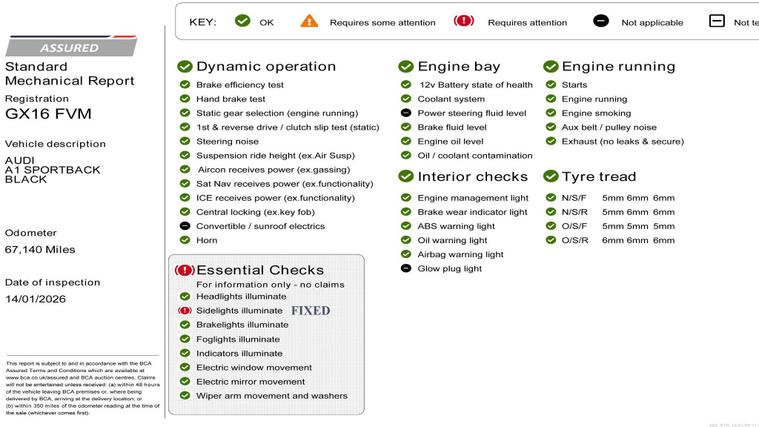 This 2016 Audi A1 TFSI Sport is a superb example of a well maintained compact car. Finished in a stylish Sport trim, this Euro 6 compliant model boasts a responsive 1.4 litre petrol engine, capable of accelerating from 0 to 60 miles per hour in just 8.6 seconds. Full Service History with 8 Audi Services and Recently Serviced by us The exterior is enhanced by a High Gloss Black Styling Package, while the interior offers a premium feel with Black Leather Alcantara upholstery. Low on insurance, With 67201 Miles Manual With 2 Previous Owner, Rear Parking Sensors, , MOT Until -16/01/27 There are many Great features in this car like The Bluetooth, LCD Display, Different modes of driving , Isofix, DABFurther enhancing your driving experience, this Audi A1 includes rear acoustic parking sensors to aid manoeuvrability and a Bluetooth interface for seamless mobile telephone preparation, including audio streaming. These features, combined with its efficient performance and sophisticated Audi design, make this A1 TFSI Sport a compelling choice for those seeking a refined and capable compact vehicle..