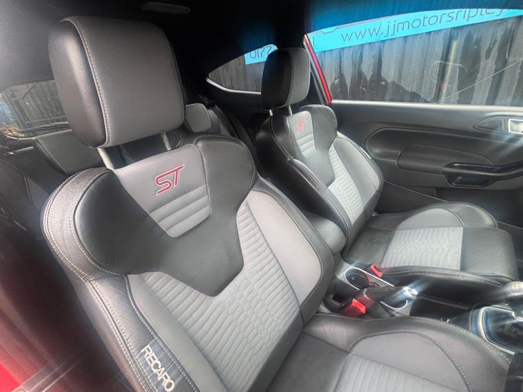 ? Call/Text/WhatsApp for more info: 01773802743 ?2014 (64) Ford Fiesta 1.6T EcoBoost ST-2 Euro 5 3dr – ULEZ Compliant | ST Performance Model | Fresh Service | 2 Keys | 3-Month Warranty IncludedA proper hot hatch offering exciting performance, sharp handling, and everyday usability. The ST-2 specification adds premium upgrades over the standard ST, including Recaro sports seats and enhanced interior features. Powered by Ford’s punchy 1.6 Turbo EcoBoost petrol engine, this Fiesta delivers an engaging drive and remains ULEZ compliant.Finished in Ford’s Race Red (Manufacturer Colour), this example has covered 85, 081 miles. It benefits from a documented service history, will come with a fresh service prior to sale, and is supplied with 2 keys and a 3-month warranty included for peace of mind.? Service History:• 42, 143 miles• 47, 598 miles• 76, 625 miles• Fresh Service Included Before Sale? Key Details:✅ 1.6T EcoBoost Petrol – Euro 5 | ULEZ Compliant✅ Manual Transmission✅ Mileage: 85, 081 miles✅ Registration: CK64 EXC✅ Year: 2014 (64)✅ Service History as Listed✅ Fresh Service Prior to Sale✅ 2 Keys Supplied✅ 3-Month Warranty Included✅ HPI Clear✅ Colour: Race Red (Ford)? Price: Please Enquire? ST-2 Features Include:? Recaro Half-Leather Sports Seats? SYNC Infotainment – Bluetooth & USB? Cruise Control? Heated Front Seats? Keyless Start? Sports Suspension & ST Styling Pack? Alloy Wheels – ST Design? Sports Exhaust Sound? ISOFIX Child Seat Mounts? Location: JJ Motors, Ripley? Call/Text/WhatsApp: 01773802743? A ULEZ-compliant Fiesta ST-2 with fresh service, strong performance, 2 keys and warranty included – a fun and affordable hot hatch ready to enjoy!? Part Exchange Welcome – Finance Available – Extended Warranty Options – Nationwide Delivery.