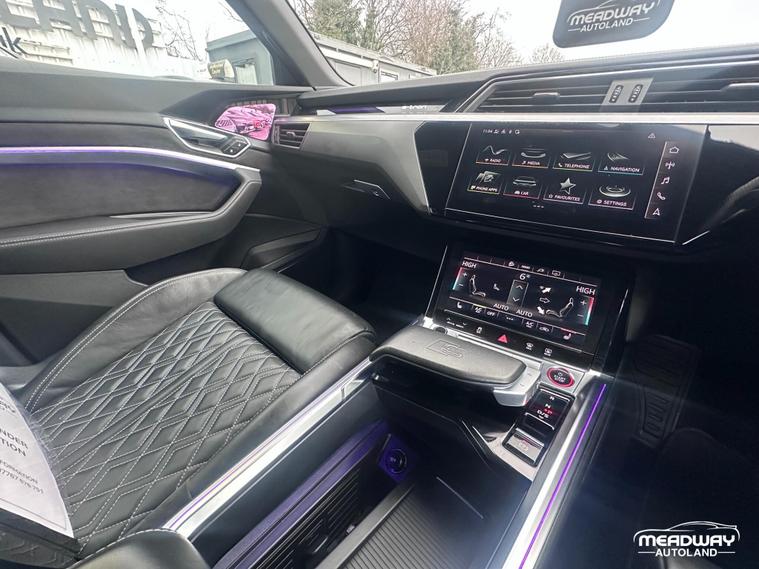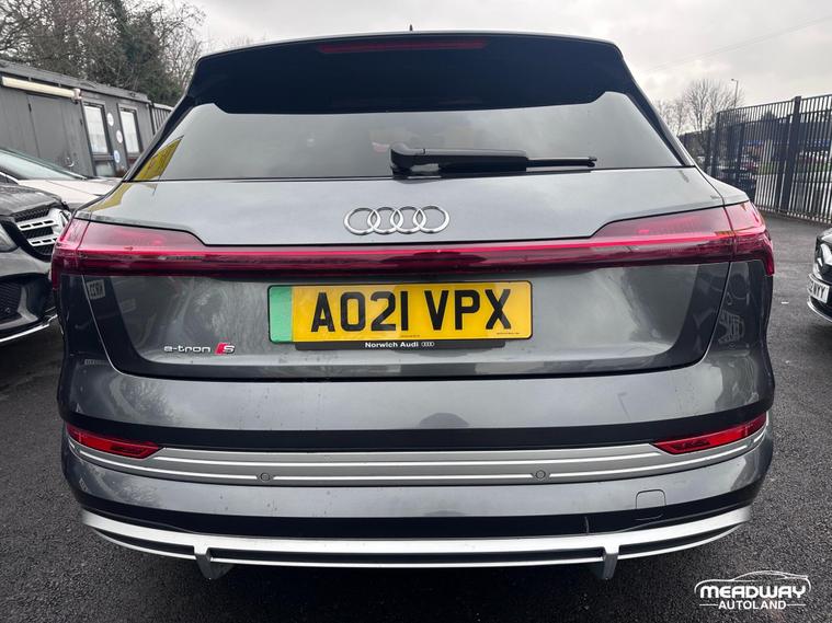 This 2021 Audi e-tron S boasts a clear vehicle history, offering you peace of mind. As an electric vehicle, it features a substantial 95 kWh battery, providing a maximum range of 222 miles when new. This four wheel drive model offers impressive performance, accelerating from 0 to 62mph in just 4.5 seconds. Inside, you'll find a comfortable and convenient cabin equipped with 2 Zone Automatic Air Conditioning, electrically adjustable front seats with a memory function for the driver, and the Audi Phone Box with wireless charging.This vehicle is HPI ClearThe vehicle comes with a 12 months warrantyThe MOT expires 26 December 2026The vehicle will be serviced upon purchase, if required. Road Tax Information - 6 months - (£107.25) 12 months (£195)Insurance Group 50EThe Audi e-tron S also enhances your driving experience with a rear view camera and Parking System Plus, complete with 360 degree sensors, making parking effortless. These features, combined with its rapid acceleration and generous boot space, demonstrate how this e-tron S stands out from other vehicles in its class. Charging at home on a 7kW charger takes approximately 14 hours for a full charge, while public charging can replenish the battery from empty to 80% in as little as 40 minutes..
