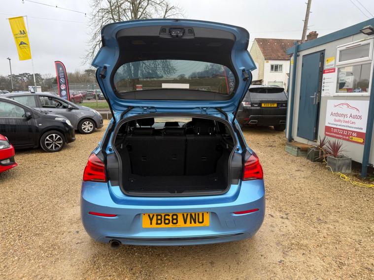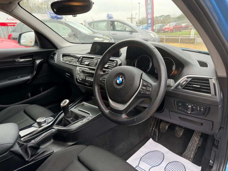 2018 BMW 1 Series 1.5 118i Sport Euro 6 (s/s) 5dr in Blue. 1 former owner and 103k miles with an Excellent Service History. Comes with a fresh new service & MOT till December 2026. Timing chain so no belts to worry about! Comes with a clean black and cloth sports seats, Navigation, Rear Sensors, DAB, Bluetooth phone connectivity, Media Player, Climate control, Isofix, CD player. Great Fuel Economy. USB & AUX input + 2 keys and more. Free 12 months AA roadside breakdown and recovery. Comprehensive AA warranties for 1, 2 or 3 years are also available. 3 months inhouse engine and gearbox warranty included and all Major Cards Accepted. Call to view and drive this stunning car! Part exchange Welcome. ***LOW RATE FINANCE AVAILABLE***.