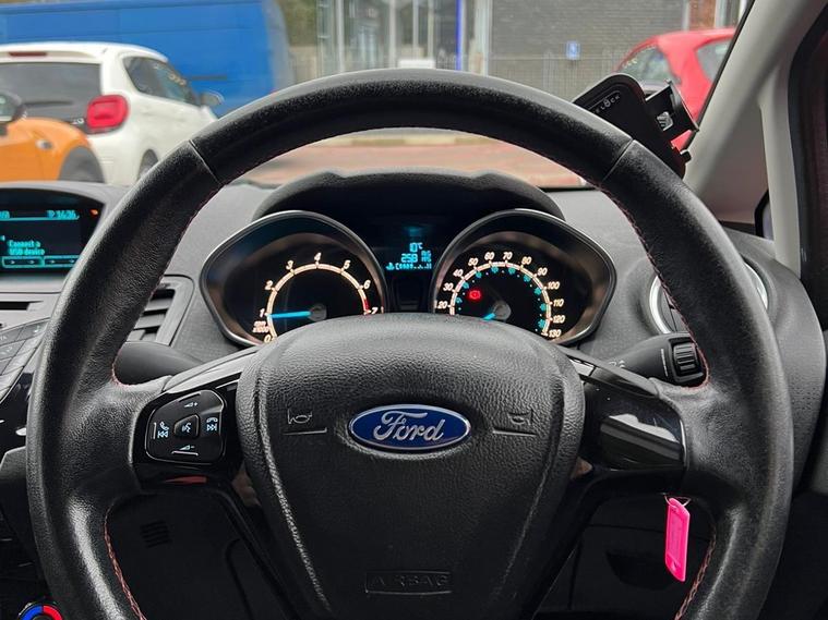 ***NEW ARRIVAL. AWAITING PREP AND PHOTOS***Boasting an MOT valid until January 2027 and a full service history, this 2015 Ford Fiesta T Zetec S Black Edition presents a compelling proposition. Powered by an efficient 1.0 litre petrol engine, this model offers a blend of performance and economy. It comes with a 3 month warranty for your peace of mind, and a clear vehicle history check confirms its sound background. The manual air conditioning ensures a comfortable cabin environment, regardless of the weather outside.This Ford Fiesta stands out with its impressive fuel economy, achieving a remarkable 66 miles per gallon, which is better than many similar vehicles. Its low CO2 emissions further contribute to its economical running costs. For those who appreciate a responsive drive, the 0-62mph acceleration in just 9.0 seconds demonstrates its spirited performance, a notable advantage over comparable cars. With only 69, 000 miles on the clock, this Fiesta represents low mileage for its age, suggesting it has been well cared for..