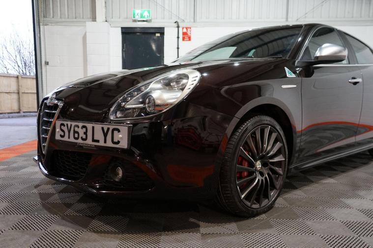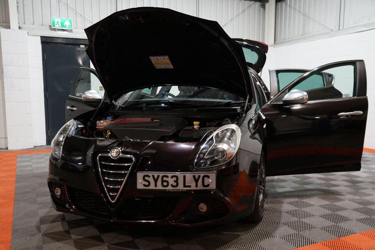 Here we have a Alfa Romeo Giulietta 1750 TBi Cloverleaf Euro 5, finished in Etna Black, a true hot hatch that blends Italian style, strong performance and real driving character. As the flagship Cloverleaf model, this Giulietta offers a more focused and engaging driving experience, backed up by Alfa Romeo’s distinctive design and heritage.Under the bonnet sits the punchy 1.75 TBi petrol engine, delivering impressive performance and a lively driving feel, perfectly suited to the car’s sporty chassis. Externally, it looks sharp and purposeful, sitting on stunning 18-inch gunmetal grey alloy wheels that complement the dark paintwork and aggressive Cloverleaf styling.Inside, the cabin continues the sporty theme with black leather seats featuring red stitching, offering excellent support and a premium feel. Heated front seats add everyday comfort, while dual-zone climate control ensures a pleasant environment for both driver and passengers. The multifunction steering wheel keeps key controls close at hand, enhancing driver focus.Alfa Romeo’s DNA driving modes allow you to tailor the car’s response, adjusting throttle, steering and suspension characteristics to suit your mood or driving conditions. Practical features such as electric folding wing mirrors add convenience in everyday use.Stylish, quick and full of personality, this Giulietta Cloverleaf is a fantastic choice for anyone looking for a hot hatch that stands out from the crowd and delivers a truly engaging drive..
