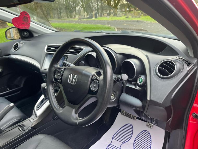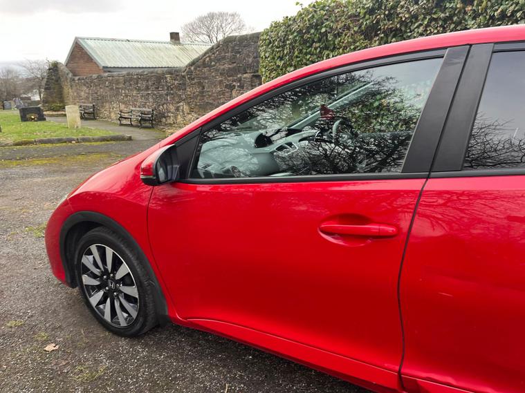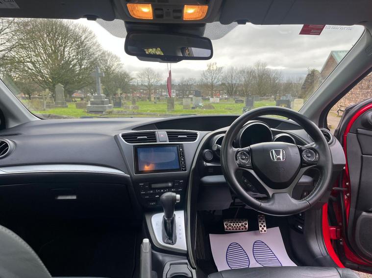 HONDA CIVIC 1.8 I-VTEC SR IN A RED EXTERIOR COLOUR WITH BLACK LEATHER INTERIOR WTH BLACK LEATHER TRIMS... COMES WITH 2 REMOTE KEYS... SERVICE HISTORY... 0LONG MOT... FEATURING MULTIFUNCTION STEERING WHEEL WITH RADIO, CRUISE CONTROL LIMITER AND PADDLESHIFT CONTROLS... DAYTIME RUNNING LIGHTS... EX PARK ASSIST... HEATED SEATS... AUTO LIGHTS AND WIPERS... FOG LIGHTS... PANROOF... REVERSE CAMERA... HONDA DAB TOUCHSCREEN RADIO WITH BUILT IN NAVIGATION SYSTEM, BLUETOOTH CONNECTIVITY AND RADIO SETTINGS... FUEL CAP RELEASE LEVER... ECON... FRONT AND REAR PARKING SENSORS... CLIMATE CONTROL WITH FRONT AND REAR HEATED WINDOWS WITH HEATED SIDE MIRROR CONTROL... BLIND SPOT SENSORS... ALL ROUND ELECTRIC WINDOWS... CENTRAL LOCKING DOOR CONTROLS... ELECTRIC ADJUSTABLE SIDE FOLDING MIRRORS... ALLOY WHEELS WITH DECENT TREAD ALL ROUND... WARRANTY INCLUDED... ALL PART EXCHANGES ARE WELCOME... OPTIONAL NATIONWIDE DELIVERY EXTRA... BOOK-INS AND VIDEO VIEWINGS ARE AVAILABLE... TEST DRIVES ARE WELCOME... FOR MORE INFORMATION CALL US TODAY ON 01616232309.0.