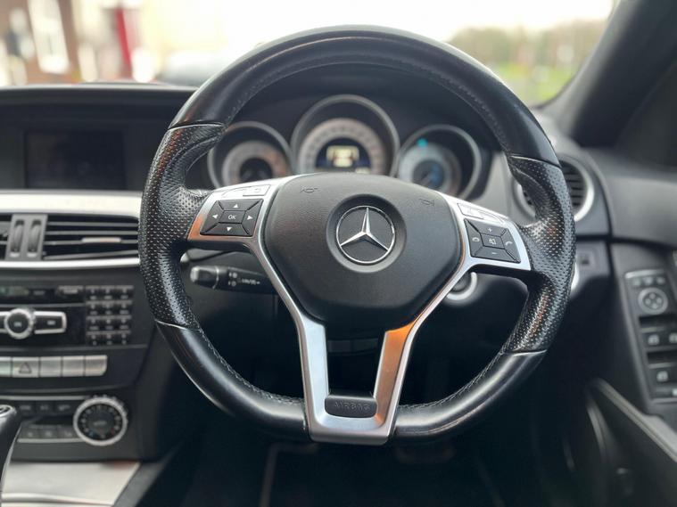 This 2014 Mercedes Benz C Class C250 CDI AMG Sport Edition offers a compelling blend of performance and luxury. Finished in the desirable AMG Sport Edition trim, this diesel model boasts a powerful 2.1 litre engine, capable of accelerating from 0 to 62 miles per hour in a swift 7.4 seconds. You'll appreciate the added privacy provided by the tinted glass and the striking 18 inch AMG 7 spoke alloy wheels. Inside, comfort is assured with heated front seats, while the Parktronic system, including front and rear parking sensors, makes manoeuvring effortless.The AMG Sport Edition designation signifies a higher level of specification, indicating that this C Class is equipped with features designed to enhance your driving experience. The combination of its dynamic acceleration, sophisticated styling, and advanced parking assistance systems sets it apart from other vehicles in its class, offering a refined and engaging drive for any journey..