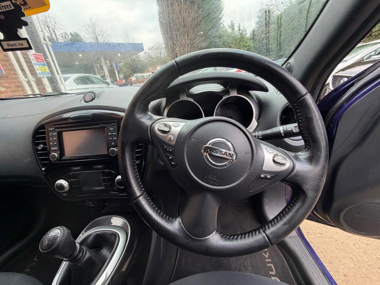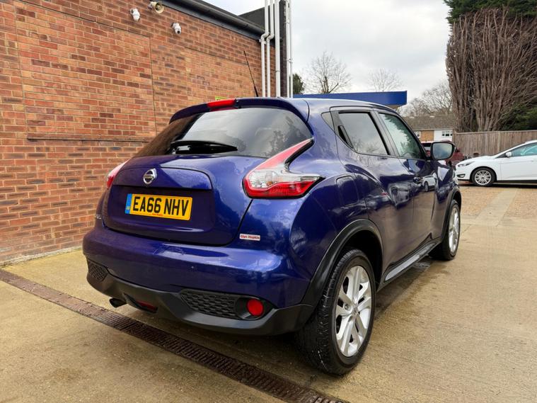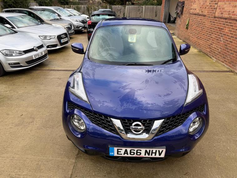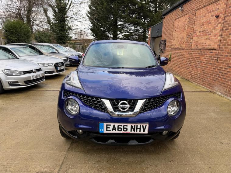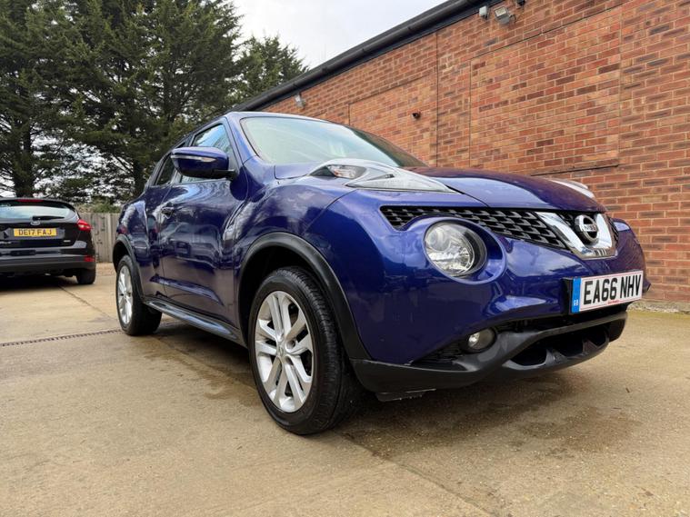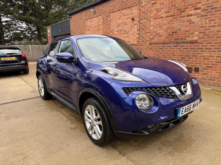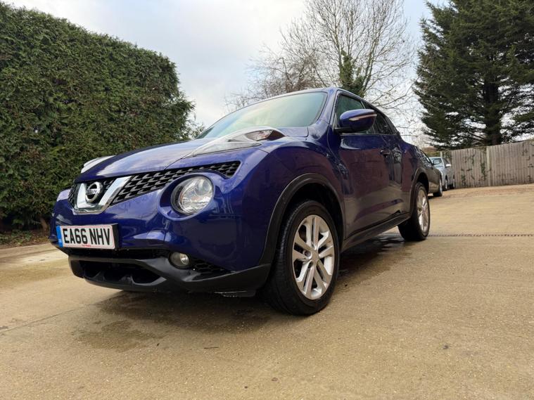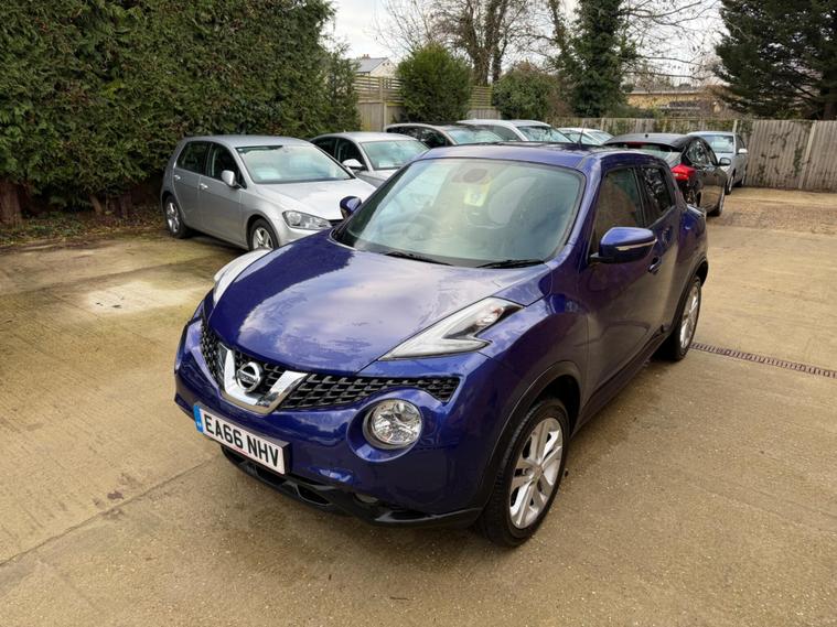 **Nissan Juke 1.2 DIG-T N-Connecta Euro 6 (s/s) 5dr****Registration:** EA66 NHV**Year:** 2016 (66)**Mileage:** 77, 103 miles**Fuel Type:** Petrol**Transmission:** Manual**Colour:** Blue**Previous Owners:** 2**ULEZ Compliant:** ✅ Yes**MOT Valid Until:** 27 October 2026**Warranty:** 3 Months Warranty Included**Service History:** Partial---### **Key Features*** N-Connecta Trim* Comfort Pack with **Opening Panoramic Sunroof*** Safety Pack including **Blind Spot Monitoring*** **360° Camera System** for easy parking* Colour Reversing Camera* Intelligent Key with **Keyless Entry & Push Button Start*** Bluetooth Phone Connectivity* Low CO2 Emissions* Excellent Fuel Economy – up to **50 MPG**---### **Price:** £5, 250---### **Contact Us**? **More cars available:** dealer's website **Text / Call:** 01223964083? **Location:** CB24 9LQ.
