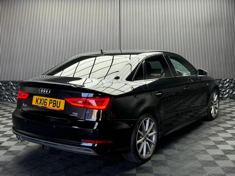 WE ARE PROUD TO OFFER THIS LOVELY AUDI A3 S LINE QUATTRO SALOON FINISHED IN A METALLIC BLACK WITH A BLACK PART LEATHER INTERIOR. THIS AUDI COMES WITH A FRESH SERVICE AND A RECENT LONG-LASTING MOT. THIS AUDI ALSO COMES WITH A HUGE AMOUNT OF SPEC INCLUDING LED HEADLIGHTS, ALLOY WHEELS, PARKING SENSORS, BLUETOOTH, BLACK LEATHER HEATED SEATS, AUDI SPORT SEATS, QUATTRO, MULTIMEDIA SCREEN, AUDI DRIVE SELECT, LEATHER STEERING WHEEL, AND MUCH MUCH MORE. THIS VEHICLE REALLY NEEDS TO BE SEEN TO BE APPRECIATED. HERE AT DRIVEWISE AUTOMOTIVE LTD, WE OFFER AS STANDARD A 12 MONTHS AA BREAKDOWN COVER & A COMPREHENSIVE 3 MONTHS WARRANTY ON ALL VEHICLES. CALL THE TEAM TODAY TO START YOUR CAR BUYING JOURNEY. WE BELIEVE THAT WHEN YOU BUY A CAR FROM US, YOU'RE JOINING THE EVER-GROWING DRIVEWISE FAMILY. WE SET THE STANDARD IN CUSTOMER CARE, ALWAYS GOING THE EXTRA MILE FOR YOU. AFTER ALL, THAT'S WHAT FAMILY DOES. PLUS, WE OFFER NATIONWIDE DELIVERY SO YOU CAN ENJOY THE DRIVEWISE EXPERIENCE NO MATTER WHERE YOU ARE. YOUR CAR BUYING EXPERIENCE IS OUR TOP PRIORITY! WE UNDERSTAND THAT FINDING THE PERFECT VEHICLE CAN BE A DAUNTING TASK, AND OUR GOAL IS TO MAKE IT AS SEAMLESS AND ENJOYABLE AS POSSIBLE. OUR PROFESSIONAL AND EXPERIENCED SALES TEAM IS HERE TO GUIDE YOU EVERY STEP OF THE WAY, ENSURING YOU FIND A CAR THAT MEETS ALL YOUR NEEDS WITHOUT ANY PRESSURE. WE PRIDE OURSELVES ON PROVIDING EXCEPTIONAL CUSTOMER SERVICE, TRANSPARENT COMMUNICATION, AND A WIDE SELECTION OF QUALITY VEHICLES. OUR EXTENSIVE INVENTORY HAS SOMETHING FOR EVERYONE. TRUST US TO HELP YOU DRIVE AWAY WITH CONFIDENCE AND SATISFACTION. EXPERIENCE THE DIFFERENCE OF A DEALERSHIP THAT TRULY CARES ABOUT YOUR NEEDS. WE LOOK FORWARD TO SERVING YOU AND HELPING YOU FIND THE PERFECT VEHICLE FOR YOUR JOURNEY AHEAD. TO CHECK AVAILABILITY, PLEASE RING AHEAD TO MAKE AN APPOINTMENT - OFF-SITE STOCK WILL NEED TO BE BROUGHT TO THE SALES SITE. PART EXCHANGE, FLEXIBLE FINANCE OPTIONS AND SAME-DAY DRIVEAWAY INSURANCE AVAILABLE..