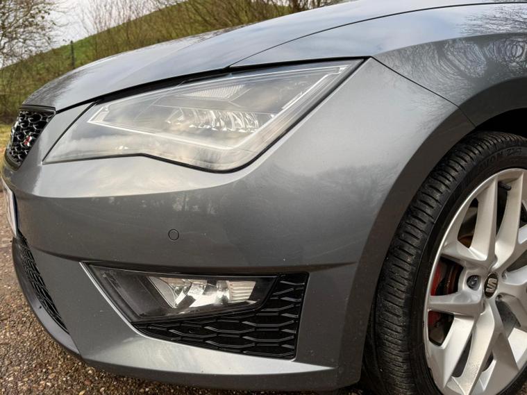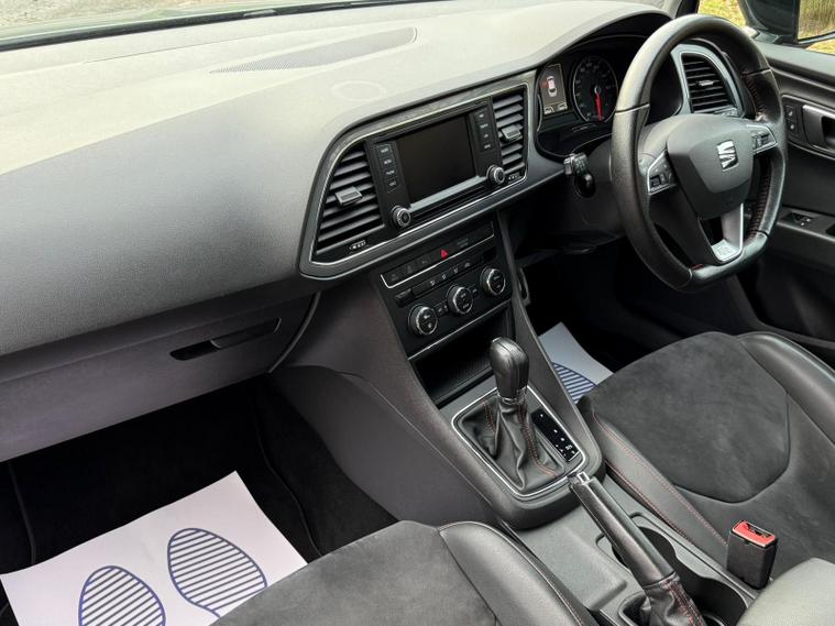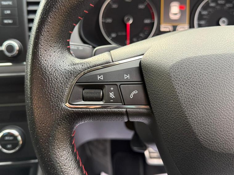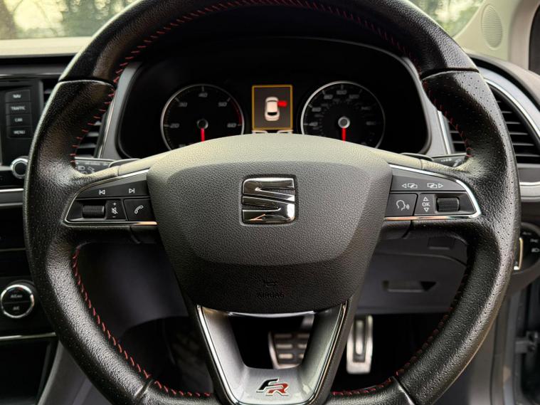- Steering Wheel - Flat-Bottomed Perforated Leather with Red Stitching and FR Logo