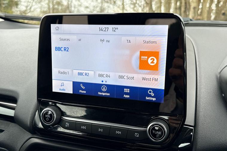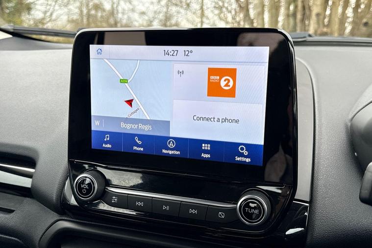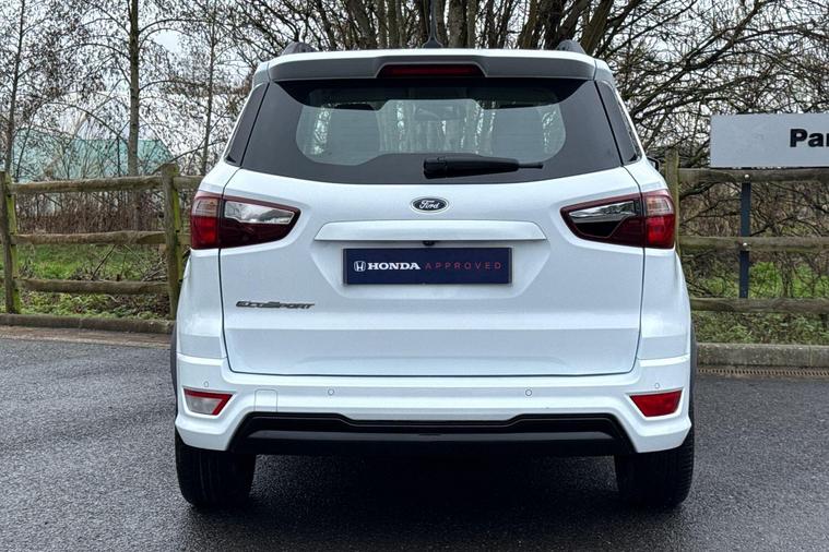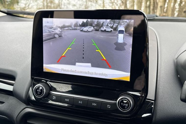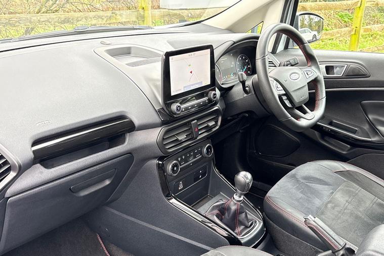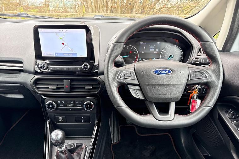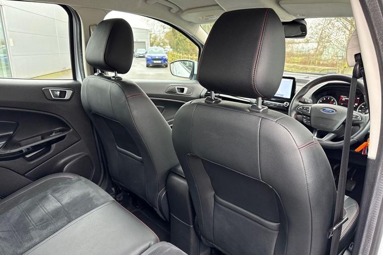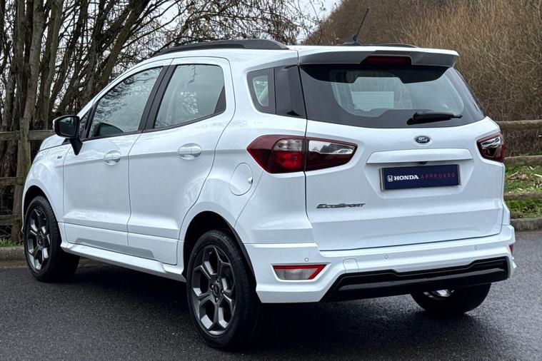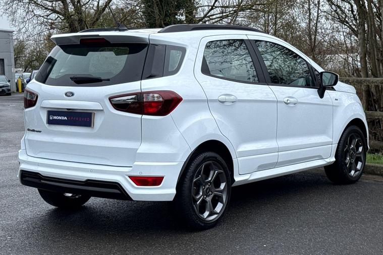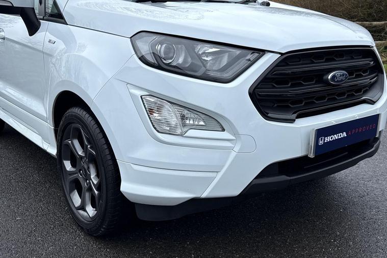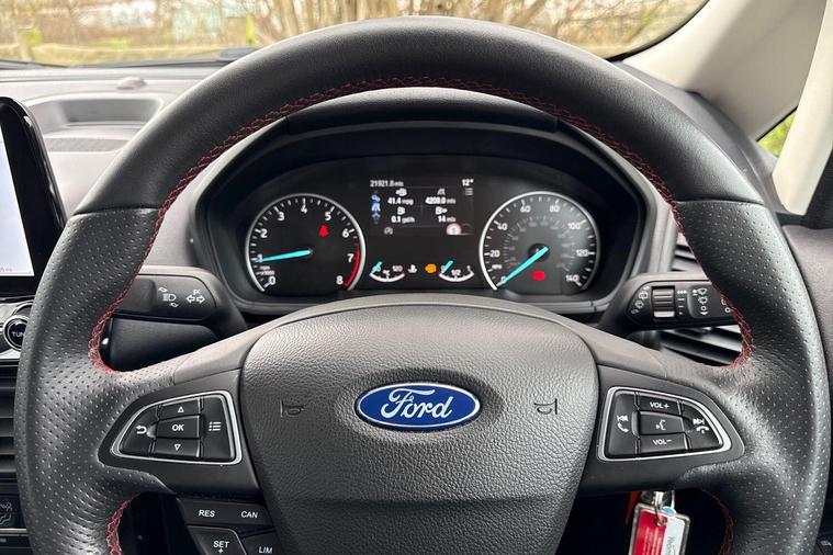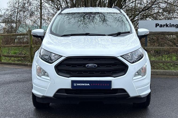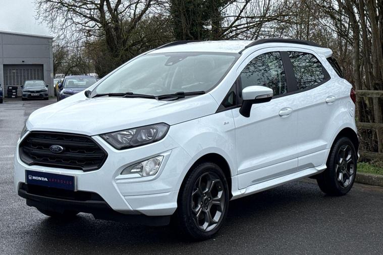 This 2022 Ford EcoSport T ST-Line is a Ford manufacturer approved vehicle, offering peace of mind with its full service history. This stylish SUV is equipped with a 1.0L petrol engine and meets Euro 6 emission standards. For added convenience, it features rear parking sensors with parking assistance and automatic headlights, making your driving experience smoother and safer.The EcoSport T ST-Line stands out with its impressive fuel economy, achieving up to 46 miles per gallon, and its low CO2 emissions, indicating a more efficient and environmentally conscious choice compared to similar vehicles. This combination of practical features, strong provenance, and economic benefits makes it a compelling option for those seeking a reliable and well maintained compact SUV..