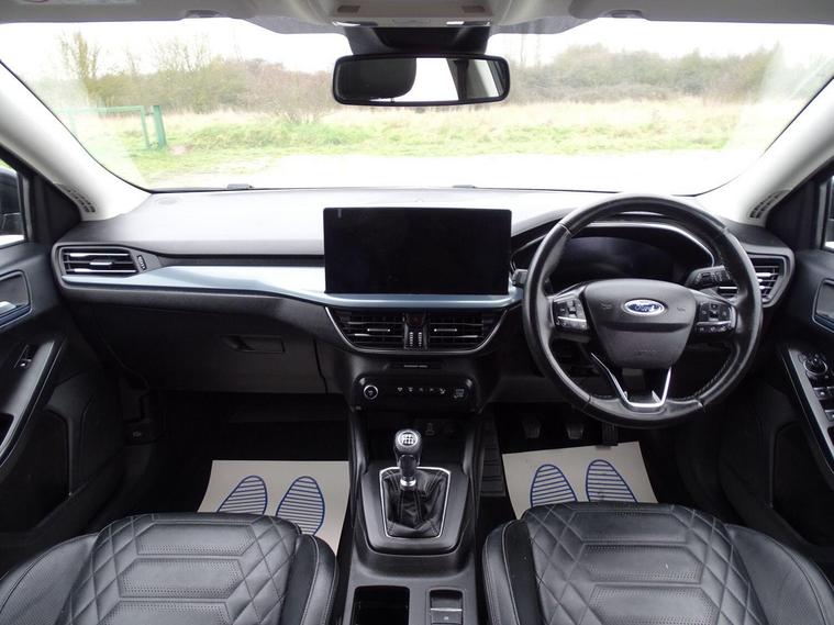 This 2022 Ford Focus T Active X Vignale presents a superb example of this popular model, boasting a 1.0 litre petrol engine and meeting Euro 6 emission standards. As a 2022 registration, it benefits from modern design and technology. This particular Focus T Active X Vignale trim level comes equipped with a sophisticated Head Up Display, ensuring key driving information is always within your line of sight. Comfort is further enhanced by heated front seats for both the driver and passenger, perfect for those colder mornings.Navigating tight spaces is made easier with front and rear parking sensors, providing an extra layer of awareness. The vehicle also features LED headlights, offering excellent visibility in various lighting conditions. Inside, you'll find Dual Zone Electronic Automatic Temperature Control, allowing you to set individual climate preferences for both driver and passenger. These features collectively demonstrate a higher level of comfort and convenience compared to many other vehicles in its class..