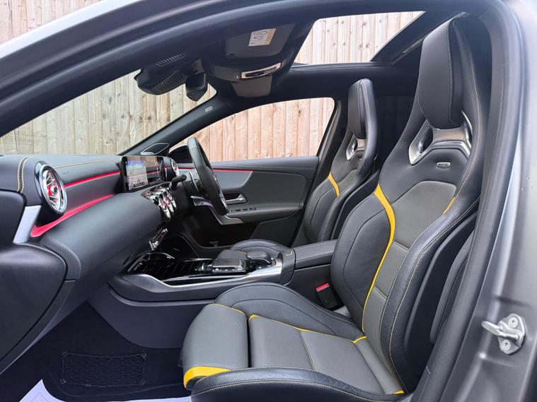 2020 20 MERCEDES-BENZ A45 S AMG PLUS 4MATIC+HIGH SPEC INCLUDES:* MAGNO GREY* FACELIFT MODEL WITH NEWER STYLING AND UPDATED INTERIOR / SAT NAV SYSTEM * 8 SPEED DCT AUTO GEARBOX WITH F1 PADDLE SHIFT * AMG AERO PACKAGE * AMG NIGHT PACKAGE* AMG QUAD PIPE EXHAUSTS * AMG LARGE BRAKE CALLIPERS* FULL LEATHER MULTIFUNCTION FLAT BOTTOM AMG STEERING WHEEL WITH CONTRAST YELLOW 12 O'CLOCK MARKER* ELECTRIC SLIDING PANORAMIC GLASS SUNROOF WITH ELECTRIC BLIND* 19'' AMG FORGED CROSS SPOKE DESIGN ALLOYS FINISHED IN SATIN BLACK WITH A DIAMOND CUT LIP* EXCELLENT TYRES ALL ROUND * AMG BODYSTYLING* AMG DYNAMICS* UPGRADED BURMESTER SOUND SYSTEM* INTERIOR AMBIENT LIGHTING* FRONT AND REAR PARKING SENSORS WITH ON SCREEN ASSIST* REVERSE CAMERA * FULL COLOUR EUROPEAN SATELLITE NAVIGATION SYSTEM * TRAFFIC ALERTS * BLACK / TITANIUM GREY PEARL PREMIUM PERFORATED LEATHER INTERIOR WITH CONTRAST YELLOW STITCHING * ELECTRIC LUMBAR SUPPORT* THREE STAGE HEATED SEATS* THREE STAGE MEMORY SEATS* ELECTRIC ADJUSTABLE SEATS* AMG ILLUMINATED ENTRY DOOR SILLS * XENON ADAPTIVE HEADLIGHTS * LED DAYTIME RUNNING LIGHTS * FRONT RADAR ASSIST* ANTI COLLISION ASSIST* LANE ASSIST* MEDIA INTERFACE * CD / DVD / MP3 PLAYER* MEDIA MEMORY CARD SLOT* DAB DIGITAL RADIO * BLUETOOTH FACTORY PHONE CONNECTION * LINGUATRONIC VOICE ACTIVATED COMMAND * CRUISE CONTROL WITH VARIABLE SPEED LIMITER * CARBON FIBRE INTERIOR PACK* AIR CONDITIONING* FRONT DUAL DIGITAL CLIMATE CONTROL* REAR DUAL DIGITAL CLIMATE CONTROL* ELECTRIC FOLDING MIRRORS* CORNERING LIGHTS * FOGLIGHTS * LEATHER CENTRE ARMREST * AUTO LIGHTS/WIPERS* ELECTRIC HANDBRAKE* ESP TRACTION CONTROL * AMG CARPET MATS * 2 KEYS* FULL MERCEDES MAIN DEALER SERVICE HISTORY FROM NEW STUNNING LOOKING CAR, WITH EXCELLENT PERFORMANCE.BEST COLOUR COMBO WITH HIGH SPEC, CAR IS IN EXCELLENT CONDITION INSIDE AND OUTHPI CLEAR WITH GOLD REPORT, 5 DAYS FREE DRIVEAWAY INSURANCE£34, 995PART EXCHANGE WELCOMEFINANCE AVAILABLE.