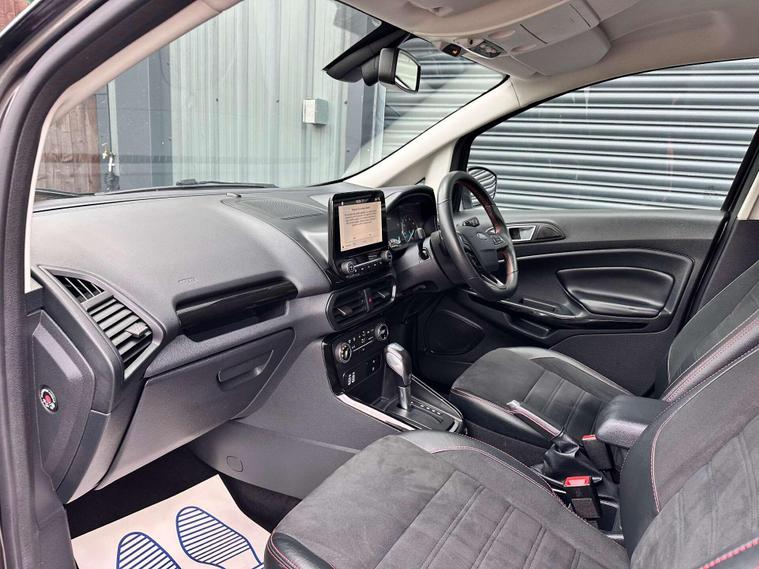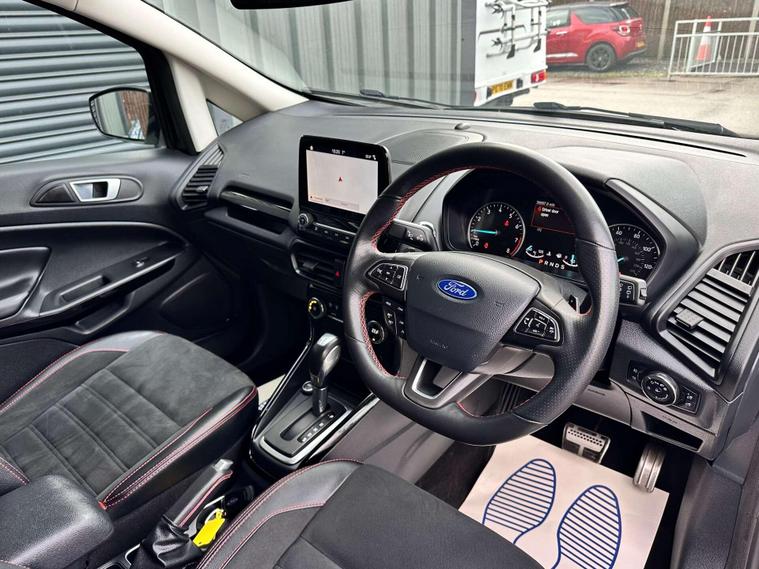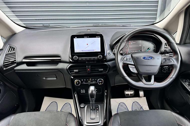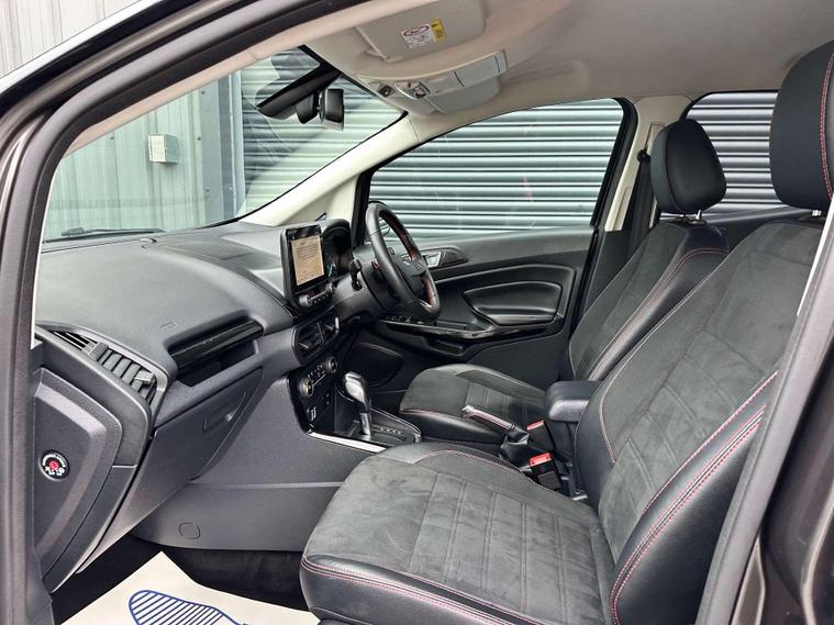 Ford EcoSport 1.0 ST-Line Auto 5dr Euro 6 ULEZ FREE. Finished in Magnetic Grey with Black cloth interior and red piping.17'' alloy wheels, Ford SYNC3 8'' touchscreen, cruise control, Apple CarPlay/ Android Auto, folding/ heated electrically controlled door mirrors, electric front and rear windows, 360 parking sensors, reversing camera, quickclear front windscreen, ST Line body styling, automatic headlights, LED DRL's, air conditioning, EATC (electronic automatic temperature control), leather wrapped multifunction steering wheel.Here at Saracen Motor Group we have been awarded AA Platinum dealership recognition along with being nominated for best customer service by Autotrader for 2021, 2022, 2023, 2024 & 2025. We are a 5-star dealership with over 600 5-star reviews across all internet platforms including Autotrader and have been regarded as one of the best dealerships to buy from in the UK.Our preparation team inspects each vehicle to the highest level possible for its age and mileage. You can rest assured your next car has been cared for to the highest standard. Service history, V5 and the HPI certificate will all be present on viewing and collection. With our location based in Battlesbridge, Essex you can enjoy a haggle-free buying experience where you can drive away the same day if prior arranged, additional fees apply please see our website for details..