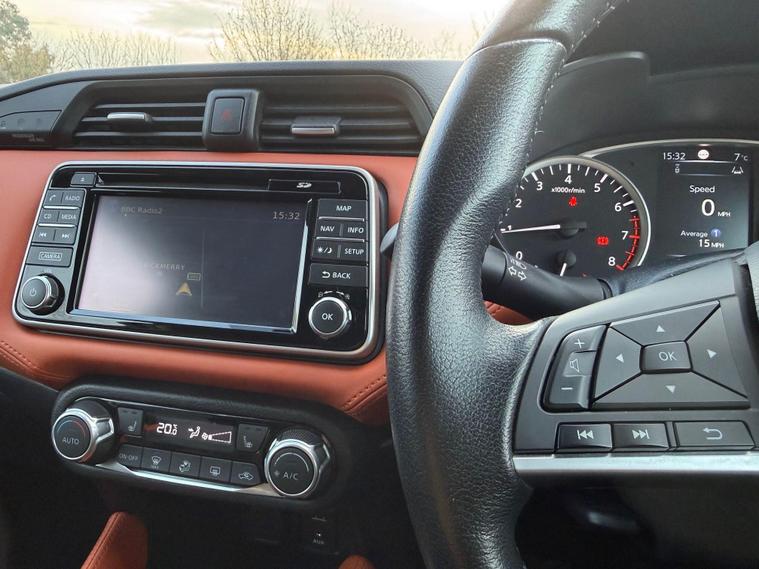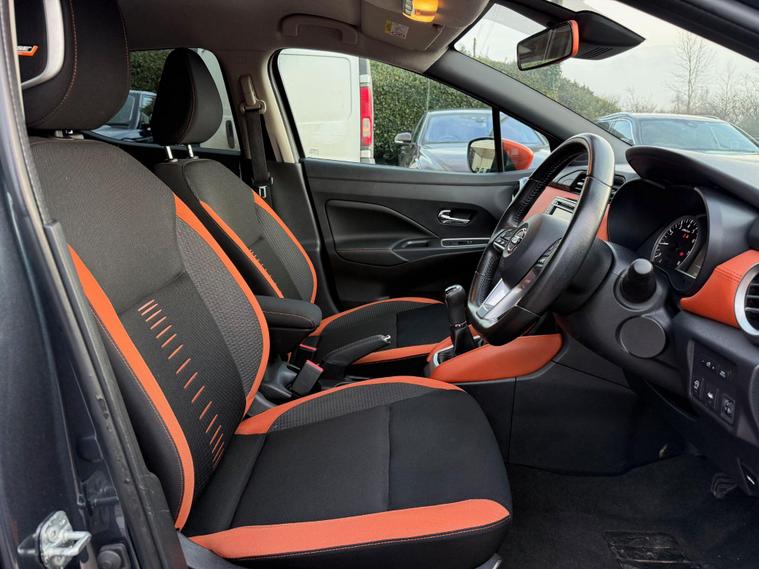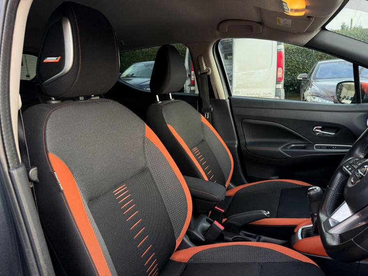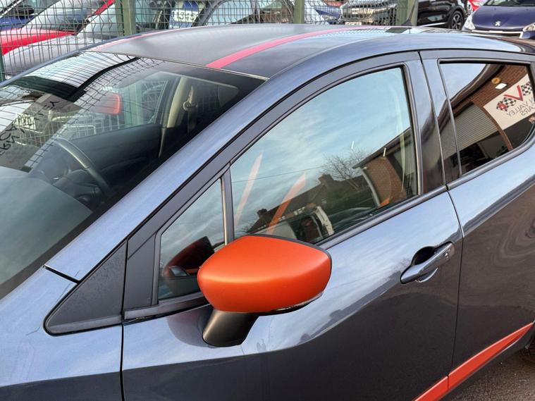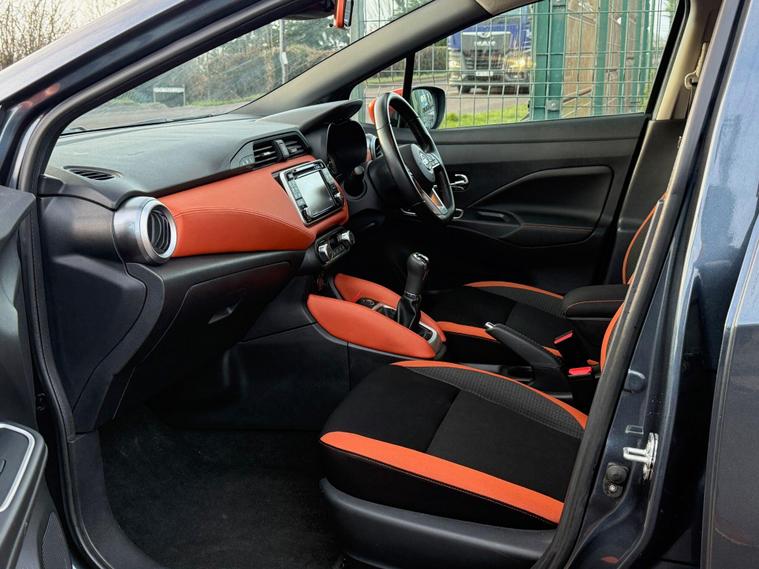 This 2018 Nissan Micra IG-T Bose Personal Edition is in excellent condition & offers exceptional value with remarkably low mileage for its age, having covered just 29, 000 miles. This Euro 6 compliant model is powered by an efficient 0.9L petrol engine, making it a sensible choice for everyday driving. It comes equipped with automatic air conditioning for your comfort, and the convenience of a rear view camera coupled with rear parking sensors to assist with parking manoeuvres. Satnav DAB media system USB & Bluetooth. Basing the BOSE Personal Edition on the Micra’s flagship Tekna grade means the car also comes with full LED headlamps. A range of advanced safety technologies including Intelligent Emergency Braking with Pedestrian Recognition. Intelligent Lane Intervention is a lane departure warning and prevention system; when activated the steering wheel gently vibrates and the car’s brakes are individually applied to guide the car back into its lane. Exterior personalisation includes orange finishers fitted to the front and rear bumper, side mouldings, mirrors caps and 17-inch alloys. The personalised look is finished with high-quality anodised black and orange stickers on the roof and bonnet. Unique BOSE Personal badging on the Micra’s B-pillars marks the car out as a limited edition. All handbooks. 2 x keys. We sell with an annual service completed & 6 Months Warrantywise Platinum Warranty. 12 Months AA Breakdown Membership included. AA Driveaway 5 Day Insurance available - Only £44.99 NEED FINANCE? No Problem - SAF Registered. Simply click 'Apply for finance' on our website dealer's website We are a FCA registered dealership.The Bose Personal Edition trim level truly stands out, featuring a premium BOSE Personal Audio Pack for an enhanced listening experience. You'll also benefit from LED headlights for improved visibility. This Micra boasts an impressive fuel economy of 61 mpg, alongside a low insurance group and low CO2 emissions, all of which indicate that this vehicle is more economical to run and insure than many similar cars..