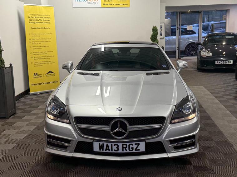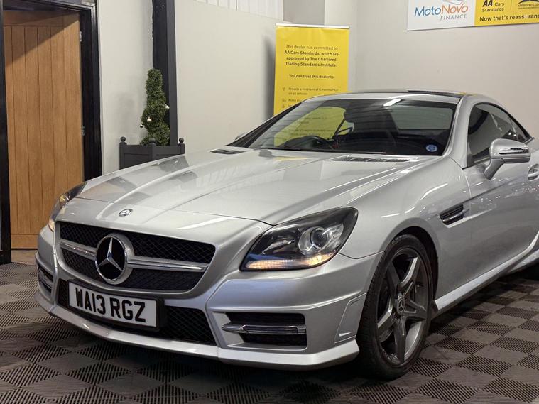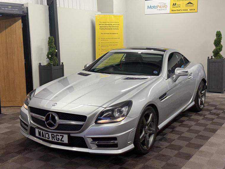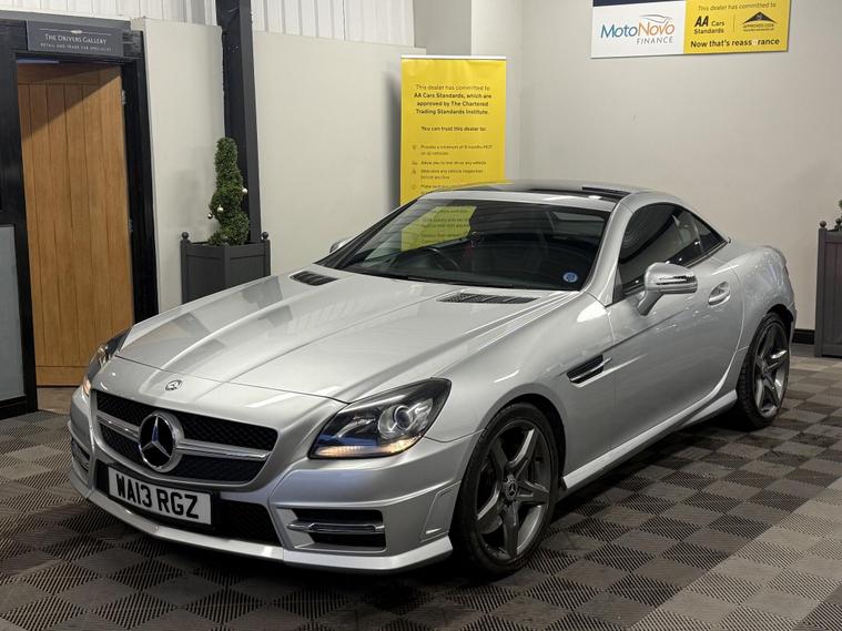 2013 Mercedes-Benz SLK 2.1 SLK250 CDI BlueEfficiency AMG Sport G-Tronic+ Euro 5 (s/s) 2dr, presented in Iridium Silver metallic. This is a lovely low mileage example of a stylish and sporty convertible that offers strong performance along with excellent comfort and economy.The car comes with a full V5, two keys and full book packs, along with a record showing 10 services in total. This includes a fresh service we will carry out as part of our preparation, along with a new MOT. Impressively, 7 of the services were completed by Mercedes-Benz main dealers, showing the car has been very well maintained.This AMG Sport model comes with a great level of specification including Airscarf neck-level heating, heated seats, AMG styling, alloy wheels, automatic transmission with paddle shift, Bluetooth connectivity, climate control air conditioning, cruise control, front and rear parking sensors, electric folding roof, multifunction steering wheel, automatic lights and wipers, and a premium infotainment system. It’s a fantastic all-round convertible that can be enjoyed comfortably all year round.A 3 month warranty is included, with the option to extend cover for up to two years for additional peace of mind. All of our retail vehicles are fully health-checked and prepared to the highest standard before sale.Part exchange is welcome for any value, and our Buying Department can provide prompt and competitive valuations. Nationwide delivery is available at an additional cost upon request. You can reserve this vehicle today with a £250 fully refundable deposit.We have over 150 vehicles in stock to choose from. Established in 2021, we pride ourselves on our excellent reviews and customer service. As an AA Approved Dealer with Trading Standards endorsement, you can trust us to deliver quality and reliability. Every car comes with 12 months free AA roadside breakdown and recovery, regardless of age, value, or mileage..