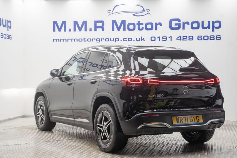 42, 541 miles. This 2022 Mercedes Benz EQA 250 AMG Line is a superb example, having had only one owner since new. This electric vehicle boasts a 73 kWh battery, offering a maximum range of 262 miles when new. It comes equipped with the desirable AMG Line trim, enhancing its sporty appeal. Notable features include THERMOTRONIC automatic climate control for perfect cabin temperature, Blind Spot Assist for added safety on the road, and a Parking Package with a reversing camera to make manoeuvring effortless. You'll also appreciate the bright LED High Performance Headlights and the immersive Mercedes Benz Sound System.Experience the convenience of electric driving with this EQA. A full charge at home using a 7kW charger takes approximately 11 hours and 6 minutes, ideal for overnight top ups. For faster charging on the go, you can reach 80% charge from empty in just 34 minutes at a compatible public charging station. These charging times, combined with its impressive range and comprehensive feature set, demonstrate how this Mercedes Benz EQA stands out from other electric vehicles in its class.Please call our experienced sales team on 01914800597 for any additional specification queries, an in depth appraisal/ Video call or maybe we can help fund your new car. All our vehicles are prepared to the highest standards by our expert technicians in our fully equipped preparation centre as we're an AA approved dealer. Every car must go through a strict and thorough inspection, Items that require attention, mechanically or cosmetically are addressed prior to delivery. We offer a wide range of Finance and Warranty packages as well as fantastic trade rates for allow wheel refurbs/colour changes, window tinting and much more. All our vehicles are subject to a £199 service support fee and are therefore supplied with pre delivery service, 12 months MOT, 12 months AA breakdown cover and 6 months Auto Protect warranty that can be extended up to 24 month. All vehicles are HPI clear a full report can be supplied at point of sale. Home Delivery can be arranged throughout the UK..