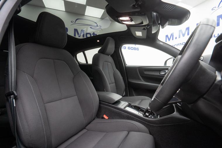 This 2022 Volvo C40 Core is a superb example, having had only one owner from new and boasting a clear vehicle history check. As a fully electric vehicle, it offers a smooth and quiet driving experience, powered by a 69 kWh battery that provides a maximum range of up to 271 miles when new. Charging at home with a 7kW charger takes approximately 11 hours for a full charge, while rapid public charging can take you from empty to 80% in just 36 minutes.The C40 Core comes equipped with a host of convenient features designed to enhance your journey. These include Front and Rear Park Assist with a rearview camera to make parking effortless, and Automatic LED Headlights with Active High Beam for optimal visibility. Inside, you'll find 2 Zone Electronic Climate Control with Rear Air Vents and the CleanZone Air Quality System to ensure a comfortable cabin environment. Plus, with Wireless Phone Charging and a large boot space, this Volvo C40 Core is as practical as it is stylish, offering a refined electric driving experience that stands out.Please call our experienced sales team on 01914800597 for any additional specification queries, an in depth appraisal/ Video call or maybe we can help fund your new car. All our vehicles are prepared to the highest standards by our expert technicians in our fully equipped preparation centre as we're an AA approved dealer. Every car must go through a strict and thorough inspection, Items that require attention, mechanically or cosmetically are addressed prior to delivery. We offer a wide range of Finance and Warranty packages as well as fantastic trade rates for allow wheel refurbs/colour changes, window tinting and much more. All our vehicles are subject to a £199 service support fee and are therefore supplied with pre delivery service, 12 months MOT, 12 months AA breakdown cover and 6 months Auto Protect warranty that can be extended up to 24 month. All vehicles are HPI clear a full report can be supplied at point of sale. Home Delivery can be arranged throughout the UK. We welcome part exchanges and can tailor finance packages..