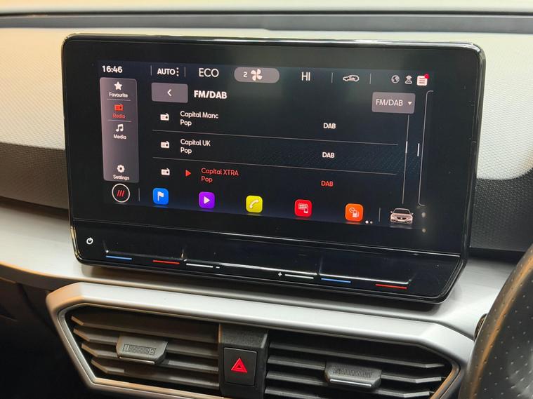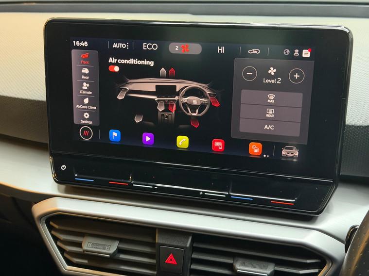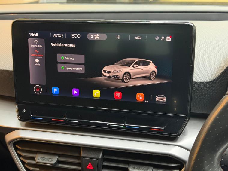 This 2021 SEAT Leon eHybrid FR boasts a clear vehicle history, offering you peace of mind. This stylish hatchback features a 1.4 litre petrol plug in hybrid engine, meeting Euro 6 emission standards. The FR trim level enhances its appeal, and you'll appreciate the convenience of separate daytime running lights with automatic headlight control and a coming home feature. Navigating tight spaces is made easier with Park Assist, which includes front and rear parking sensors.Further enhancing your driving experience, this Leon is equipped with LED headlights that feature dynamic turn signals. Inside, the Media System Plus with navigation and Bluetooth connectivity keeps you informed and entertained, while the wireless device charger ensures your phone is always ready to go. These features collectively demonstrate how this SEAT Leon eHybrid FR offers a superior and more advanced package compared to other vehicles in its class..