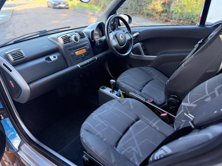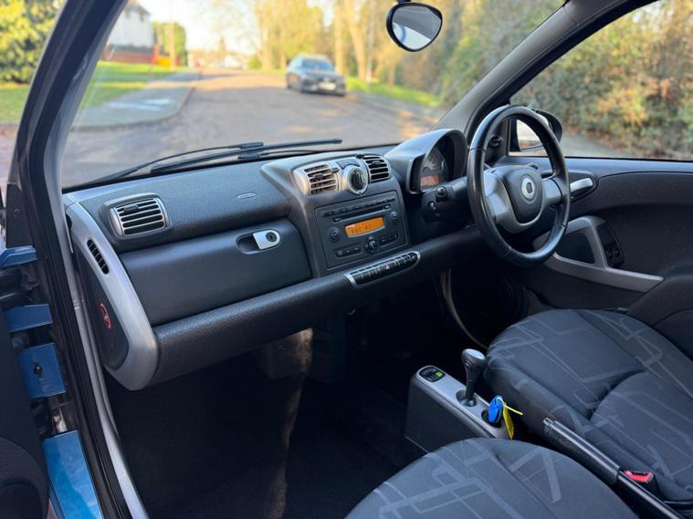 Fsh 6 months warranty 1 years AA breakdown cover AA APROVED garage This 2009 Smart Fortwo MHD Passion offers peace of mind with a clear vehicle history check and a comprehensive 6 month warranty. This particular model is a 1.0 litre petrol, finished in the Passion trim. It features a striking panoramic glass roof complete with a sunblind, enhancing the sense of space within the cabin.With an impressive fuel economy of 66 miles per gallon, this Smart Fortwo is an economical choice for city driving and beyond. Its low CO2 emissions further contribute to its appeal as an environmentally conscious option. The vehicle will also come with 12 months MOT provided on purchase, ensuring its roadworthiness for the year ahead..