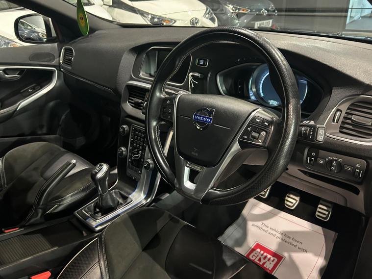 We are delighted to offer for sale this 2015(15) Volvo V40 R-Design Nav D2 in gleaming Metallic Blue. In excellent condition throughout, this affordable 5 door hatchback is very economical (up to 80mpg on a combined run). It is spacious and can comfortably seat 5 passengers and also has a good sized boot. With its average mileage there is plenty of life left in this well maintained car and it is ULEZ compliant. HISTORY: This car has had only 3 careful previous owners, comes with 2 keys and has a full service history (x5 main dealer + x3 independent stamps). It was most recently serviced on 26/01/2026 at 90, 991 miles. The car has covered just 91, 000 miles and will come with a fresh 12 months MOT.SPEC:Comfort is guaranteed in this Volvo V40 thanks to the half leather seats, leather trimmed multifunction steering wheel and gear lever, leather front and rear arm rests along with climate control and an upgraded Harmon Kardon sound system. Driving is made easier with the 1.6 diesel engine and very smooth 6 speed manual gearbox, Driving mode selection, cruise control/speed limiter, SatNav, rear parking sensors, auto headlights and daylight running lights.This vehicle also has electric windows; electric, heated door mirrors; remote central locking with alarm and ISOFIX points in the rear for child seats. The Sensus connect system/voice control allows handsfree calls , along with DAB radio, CD, Bluetooth, USB/Aux inputs for your entertainment needs. Outside the Metallic Blue paintwork is complemented by 17 inch Volvo diamond cut alloy wheels in very good condition and privacy glass.OUR PREP: For your peace of mind, this vehicle has gone through our strict preparation process including an independent vehicle inspection, professional valet and MOT. It is HPI clear and comes with a 3 month/2500 mile warranty included in the advertised price. Extended warranties are also available. We offer free delivery within a 30 mile radius. Nationwide delivery can also be arranged and part exchange is always welcome. VIEWING IS STRICTLY BY APPOINTMENT ONLY SO PLEASE CALL..