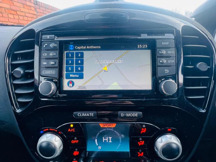 SAT NAVIGATION REVERSE CAMERA LOW MILGE CAR MINT CONDITION IN SIDEO OUTSIDE JUST ARRIVED PART EXCHANGE AND DELIVER AVAILABLE LOW RATE FINANCE AVAILABLE 2016 Nissan Juke N Connecta stands out with its remarkably low mileage of just 56, 264 miles for its age. This popular compact SUV is equipped with a 1.6 litre petrol engine and meets Euro 6 emissions standards. Inside, you'll find convenient features such as Bluetooth integration for seamless telephone connectivity, a colour reversing camera to aid with parking, and an intelligent key system that allows for keyless entry and push button start. The Juke also boasts automatic climate control with a pollen filter, ensuring a comfortable cabin environment.The N Connecta trim level offers a compelling package, and this particular Juke is also in a low insurance group, which can help to reduce ownership costs. These factors, combined with its well maintained low mileage, suggest this Nissan Juke offers excellent value and a superior ownership experience compared to many other vehicles in its class..