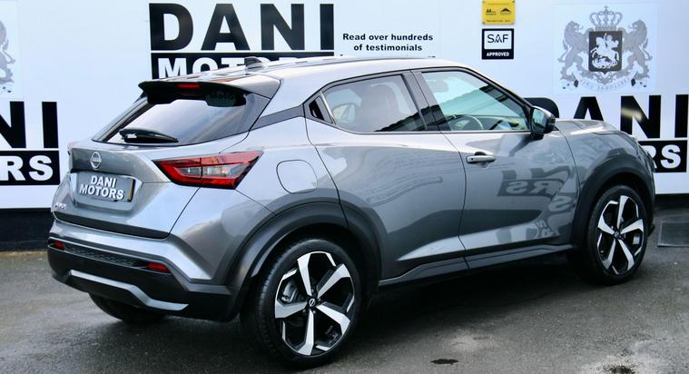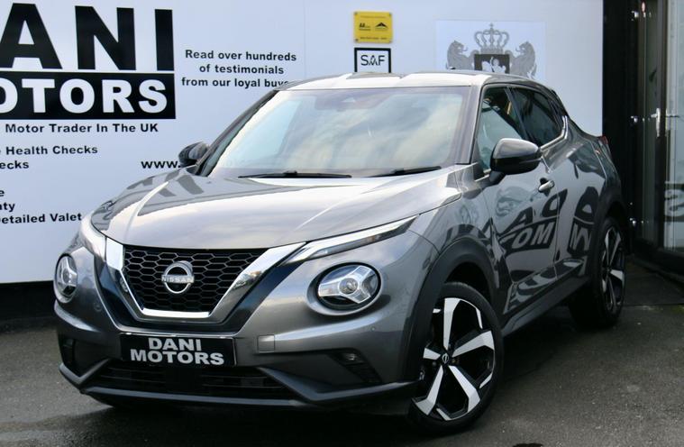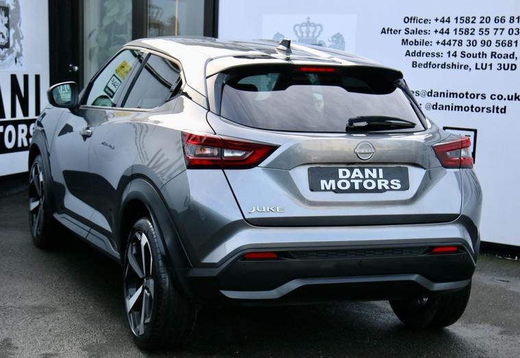 This absolutely stunning Nissan Juke 1.0 DIG-T Tekna+ finished in Grey features an array of extras from factory include, BOSE surround sound with speakers in headrests, Adaptive cruise control, Blind spot assist, Alloy Wheels, Heated front screen, Apple carplay and Android auto, Electric folding mirrors, Heated seats, Alloy Wheels, Navigation System, Bluetooth, DAB Radio and so much more. This vehicle is ULEZ Compliant. FREE 12 Months MOT provided upon request, We offer optional Ceramic Coating to all our vehicles which benefits for added paintwork protection and prolonged enhancement of the paintwork to your new car. You may see reflections of other surrounding objects. Full Dealer Facilities. HPI Clear, Service History, Only 1 Owner from New, Brilliant Value. All our cars undergo a comprehensive 150 point check together with a brake inspection. Mechanical Report and HPI Certificate provided (upon request). Here at Dani Motors, quality matters to us. Not just quality service but the high quality of our vehicles, and the standard at which they hit our forecourts. Our sole purpose is to deliver the highest quality cars possible, both mechanically and aesthetically. You can also reserve the car until you can come and take it for a test drive, so you do not miss out! Buy your next car from us, as we are a trusted used car dealership. We also provide finance from a few UK's leading lenders, an optional extra 5-day drive-away insurance, part exchange so you can get everything sorted in one place. Every car has passed a rigorous pre-sales inspection in our workshop, which are home to our technicians..