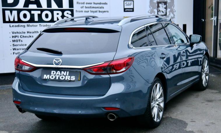 This absolutely stunning Mazda6 2.0 SKYACTIV-G Sport Nav+ Tourer finished in GREY features an array of extras from factory include, Reverse cam, Front and Rear parking sensors, Apple carplay and Android auto prep, Lane departure warning, Blind spot assist, Heated steering wheel, Heated front seats, Electric memory seat, Heads up display, Alloy Wheels, Navigation System, Bluetooth, DAB Radio and so much more. This vehicle is ULEZ Compliant. FREE 12 Months MOT provided upon request, We offer optional Ceramic Coating to all our vehicles which benefits for added paintwork protection and prolonged enhancement of the paintwork to your new car. You may see reflections of other surrounding objects. Full Dealer Facilities. HPI Clear, Service History, Only 1 Owner from New, Brilliant Value. All our cars undergo a comprehensive 150 point check together with a brake inspection. Mechanical Report and HPI Certificate provided (upon request). Here at Dani Motors, quality matters to us. Not just quality service but the high quality of our vehicles, and the standard at which they hit our forecourts. Our sole purpose is to deliver the highest quality cars possible, both mechanically and aesthetically. You can also reserve the car until you can come and take it for a test drive, so you do not miss out! Buy your next car from us, as we are a trusted used car dealership. We also provide finance from a few UK's leading lenders, an optional extra 5-day drive-away insurance, part exchange so you can get everything sorted in one place. Every car has passed a rigorous pre-sales inspection in our workshop, which are home to our technicians..