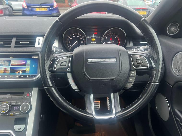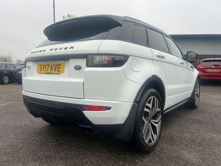 This 2017 Range Rover Evoque TD4 HSE Dynamic boasts a full service history, offering peace of mind for its next owner. This stylish SUV features a powerful 2.0L Diesel engine paired with a capable Four Wheel Drive system, ensuring confident performance in various conditions. The HSE Dynamic trim level comes equipped with desirable features such as 20in Shadow Chrome alloy wheels, a powered tailgate for easy access, and a striking Santorini Black contrast painted roof with a matching spoiler. Inside, you'll find premium carpet mats and a fixed panoramic roof with a powered blind, creating a bright and airy cabin.Experience impressive efficiency with a fuel economy of up to 55 mpg, alongside low CO2 emissions making it an environmentally conscious choice. The Evoque also offers generous boot space, perfect for all your luggage needs. Its acceleration from 0 to 60 mph in just 8.5 seconds demonstrates its dynamic capabilities, highlighting how this vehicle offers a superior driving experience compared to others in its class..