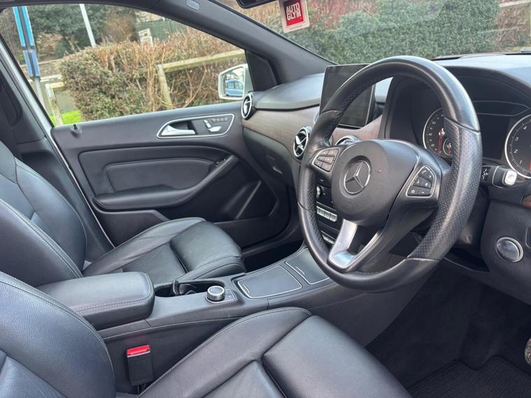 WE ARE PLEASED TO OFFER THIS HIGHLY DESIRABLE HIGH SPECIFICATION WELL MAINTAINED RARE PETROL AUTOMATIC EURO SIX MERCEDES-BENZ B CLASS 1.6 B180 EXCLUSIVE EDITION ( PLUS ) 7G-DCT FIVE DOOR + FINISHED IN THE BEST COLOUR OF POLAR SILVER METALLIC PAINTWORK AND IS COMPLEMENTED WITH A FULL BLACK LEATHER UPHOLSTERY + ONLY 38, 996 MILES HAS BEEN COVERED IN TOTAL BY TWO OWNERS + LAST LADY OWNER SINCE JUNE 2023 AND IS BACKED WITH AN EXCELLENT SERVICE HISTORY + JUST BEEN SERVICED BY GERMAN AUTO CARE OF PUDSEY WHICH INCLUDED THE AUTOMATIC TRANSMISSION OIL BEING CHANGED + 12 MONTHS MOT + OUTSTANDING CONDITION THROUGHOUT AND DRIVES SUPERB + FULL EXCLUSIVE EDITION ( PLUS ) SPECIFICATION WHICH INCLUDES AN ELECTRIC TILT N SLIDE GLASS SUNROOF / SATELLITE NAVIGATION / SMART PHONE INTERFACE WITH APPLE AND ANDROID CAR PLAY / CRUISE CONTROL / PARKING DISTANCE CONTROL WITH REVERSING CAMERA / PRIVACY GLASS / 17'' FIVE TWIN SPOKE ALLOY WHEELS FINISHED IN HIMALAYAS GREY / FULL ELECTRIC PACK WITH POWER ADJUSTABLE FRONT SEATS ( THE DRIVER AND PASSENGER SEATS HAVE MEMORY FUNCTION ) / MULTI FUNCTION LEATHER STEERING WHEEL PLUS MUCH MORE + HANDBOOK PACK + DIGITAL PRINTOUT SERVICE HISTORY + 2 X KEYS + ANY TRIAL OR INSPECTION IS WELCOMED + HPI CLEAR WITH CERTIFICATE + SIX MONTHS NATIONWIDE WARRANTY IS INCLUDED + VIEWING IS ESSENTIAL TO APPRECIATE THIS MUCH SOUGHT AFTER EXAMPLE OF THIS RARE HIGH SPECIFICATION AUTOMATIC. We have been established in Baildon for over 20 years. All our vehicles are fully inspected, prepared and valeted. We are finance specialists. Part exchange is welcome. All major credit and debits accepted. Open 7 days. Our postcode is BD177EX..